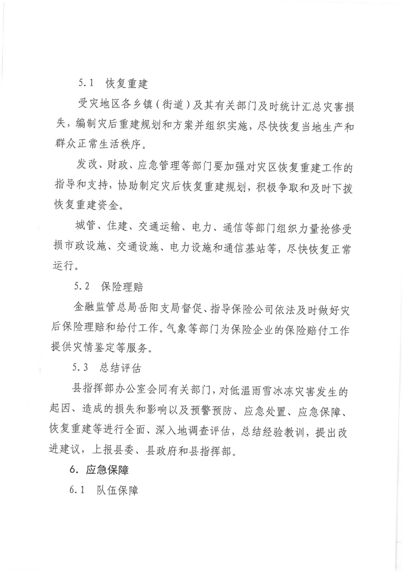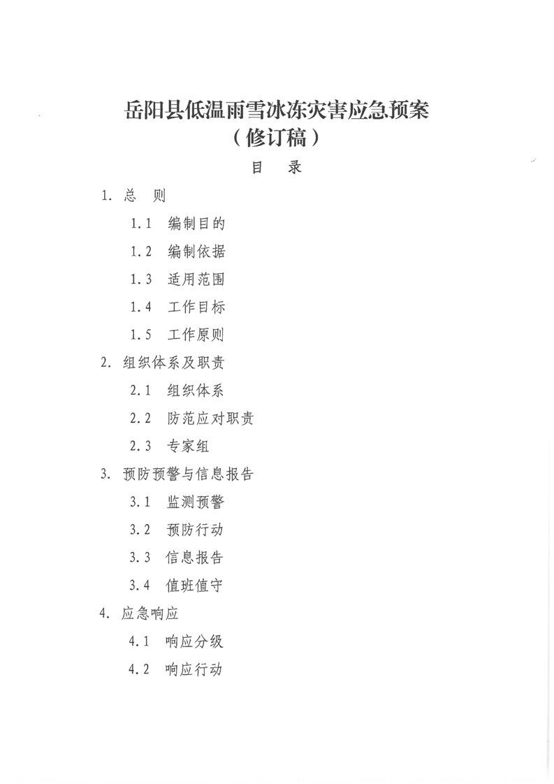 岳阳县低温雨雪冰冻灾害应急预案