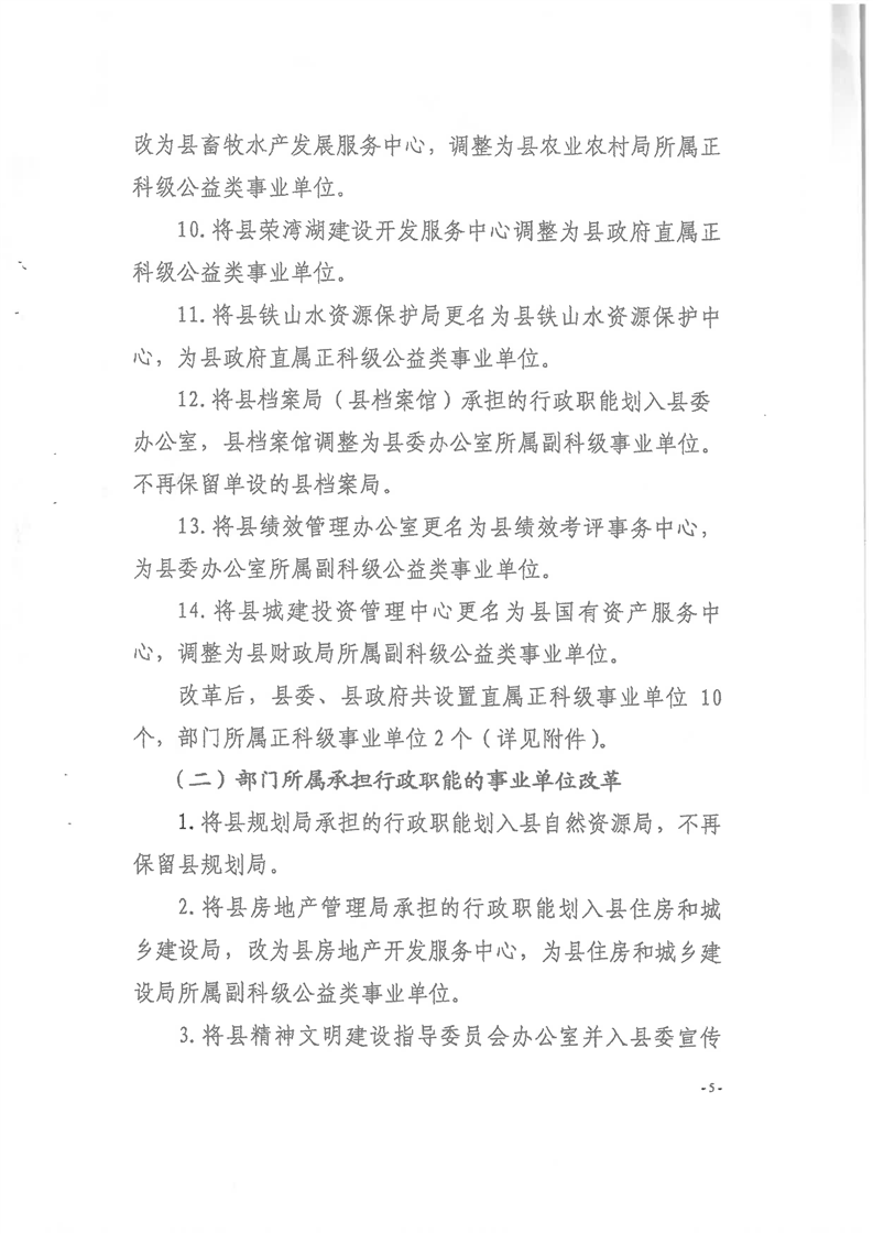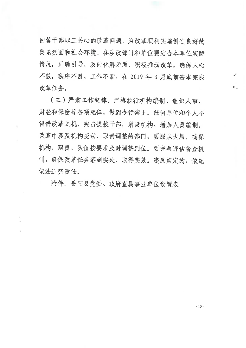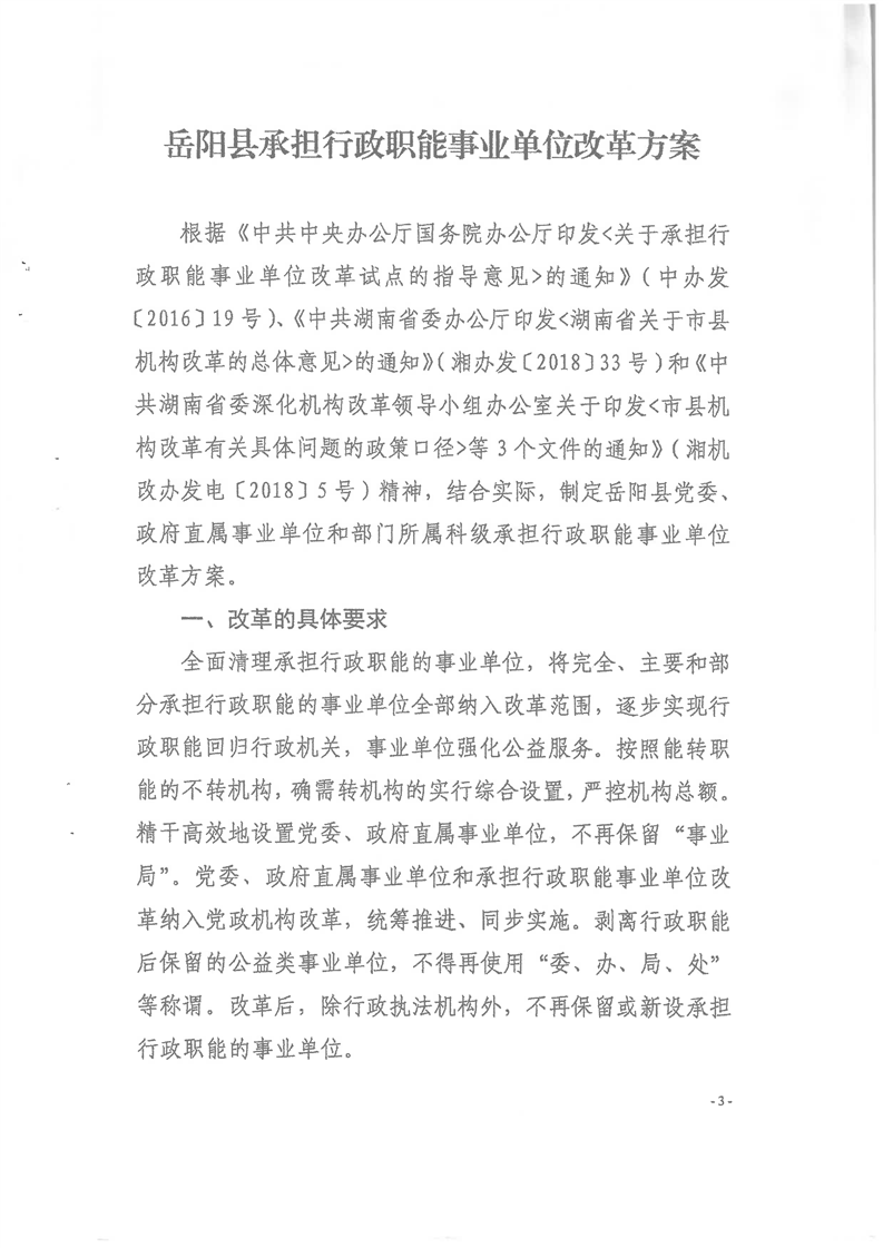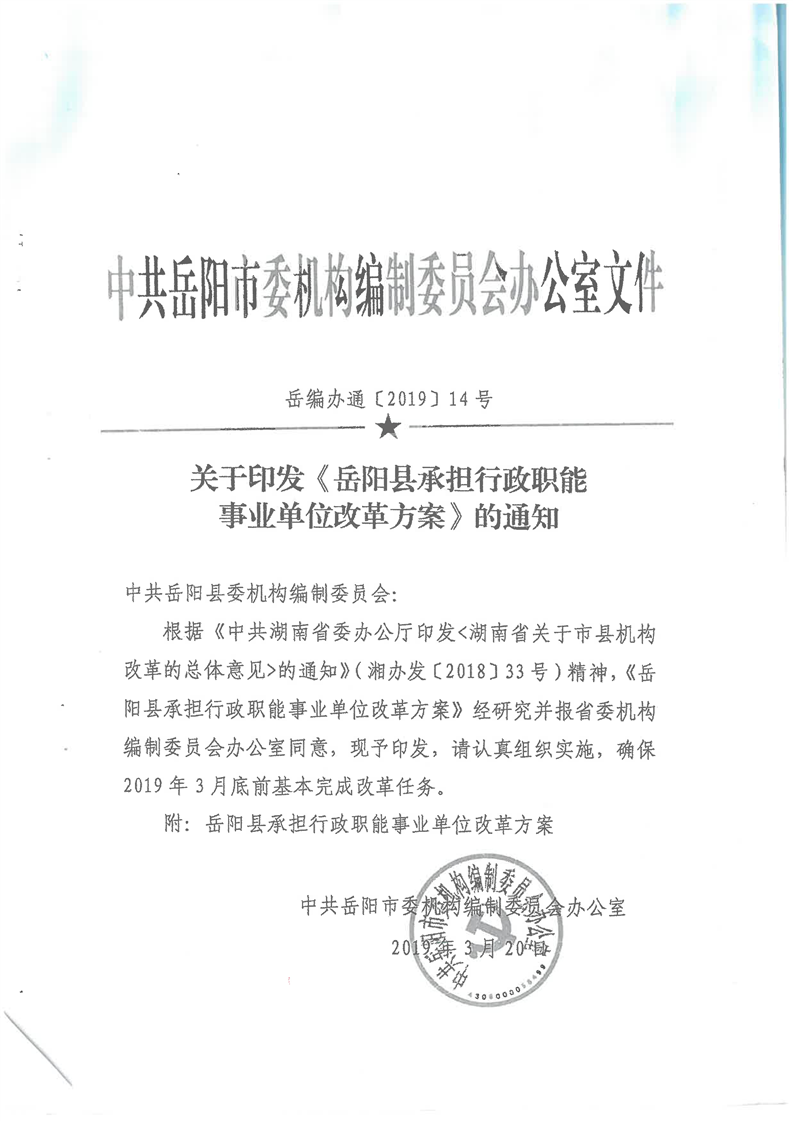 岳阳县事业单位改革方案(将县移民局改为县库区移民服务中心)