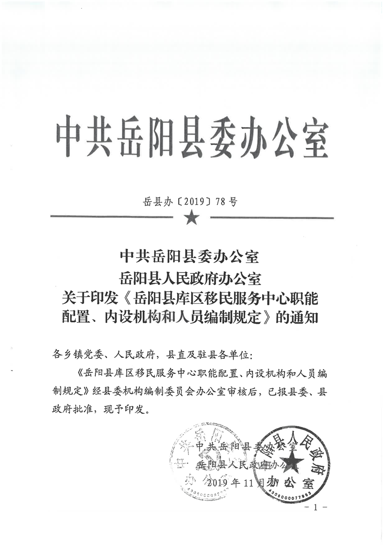 岳阳县库区移民服务中心职能配置内设机构和人员编制规定
