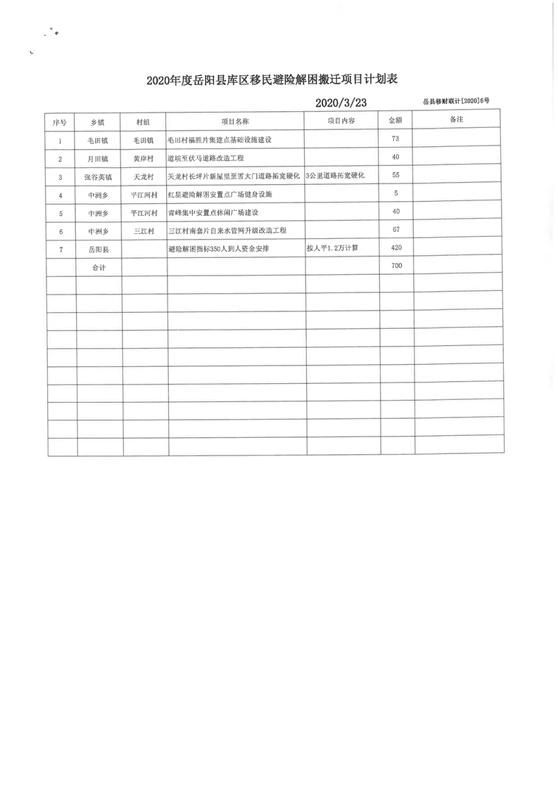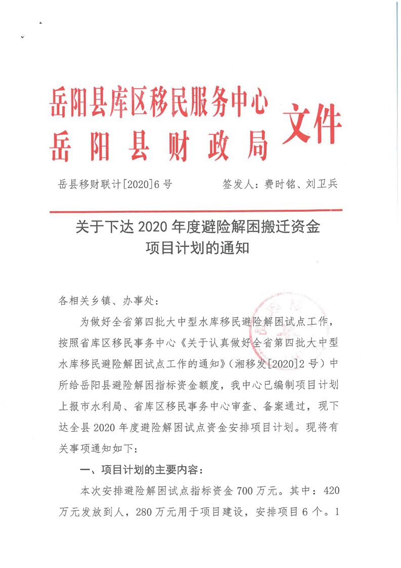 关于下达2020年度避险解困搬迁资金项目计划的通知