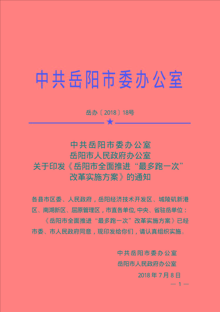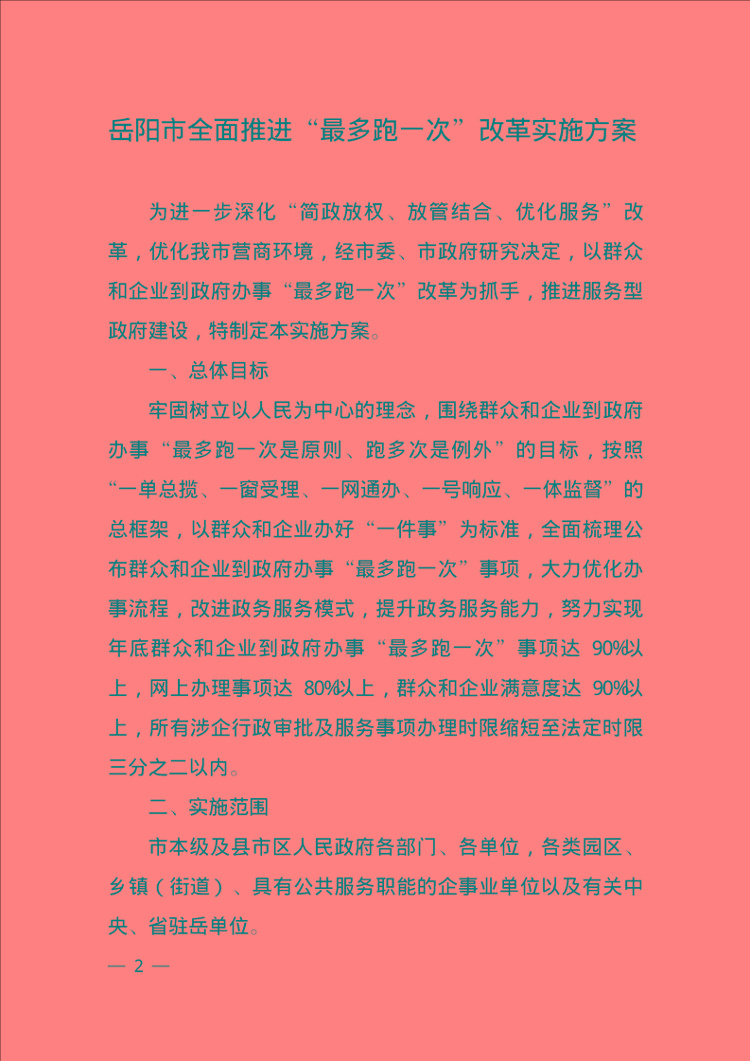 岳阳市全面推进“最多跑一次” 改革实施方案