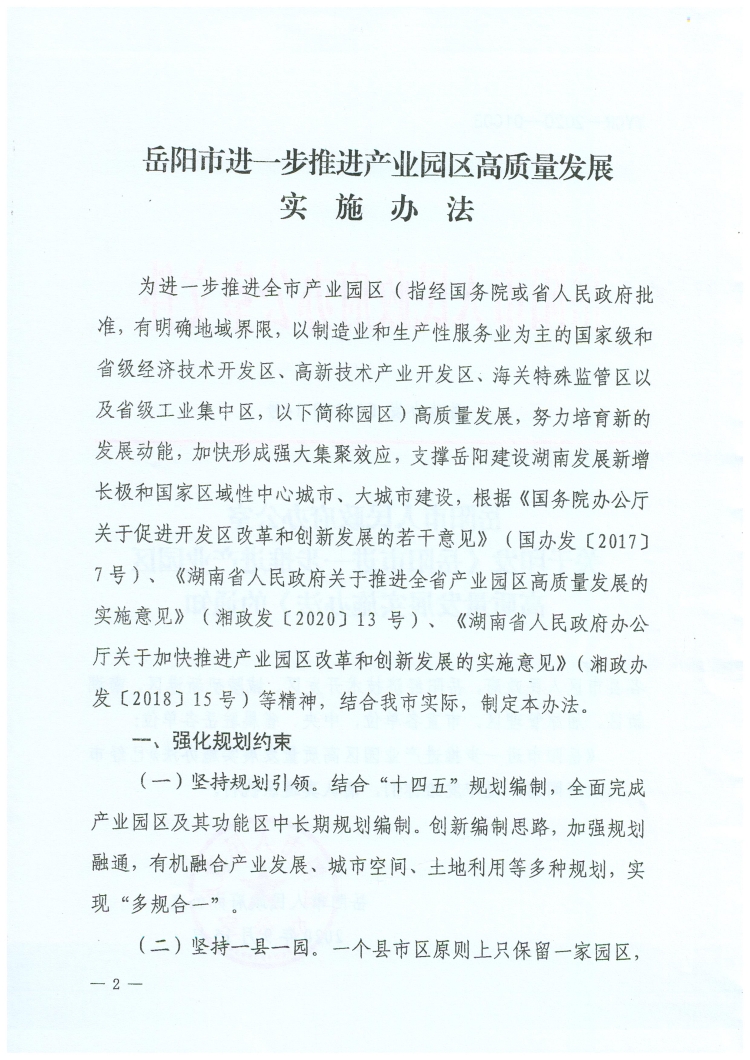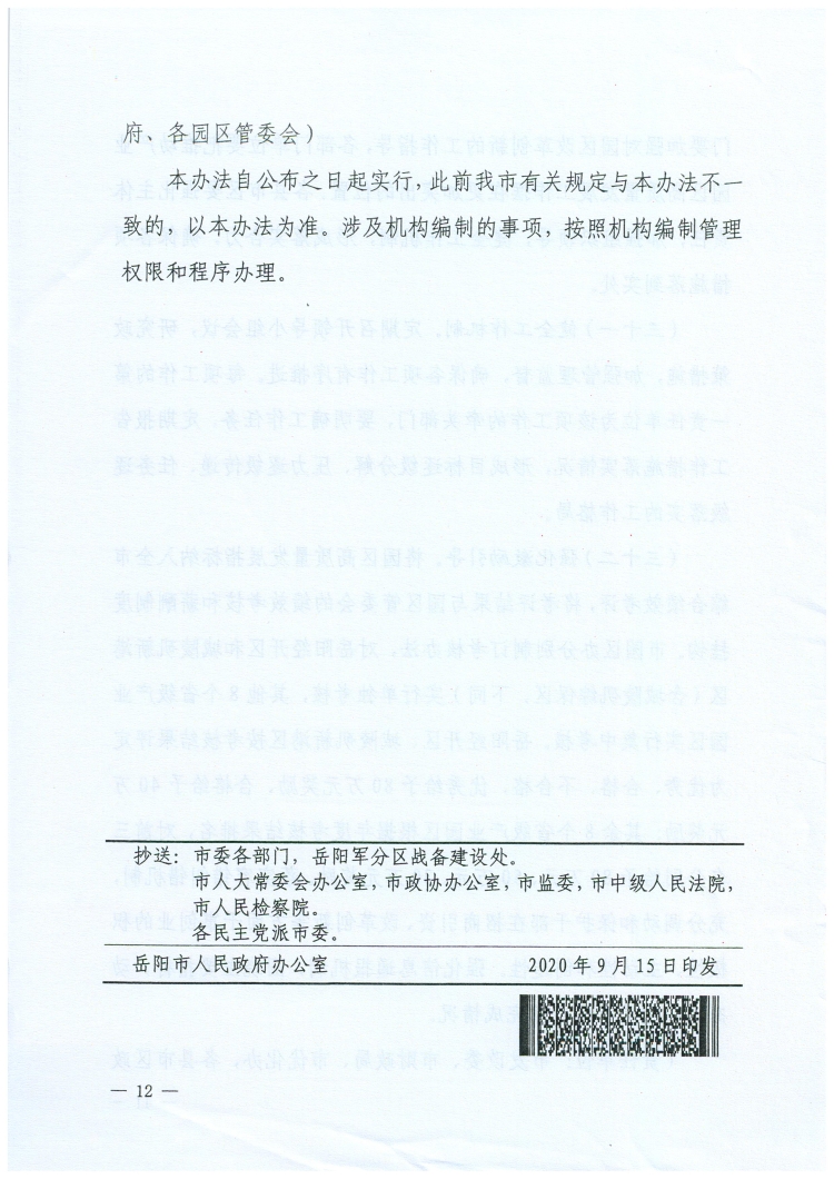 岳政办发【2020】14号(新园区十条)