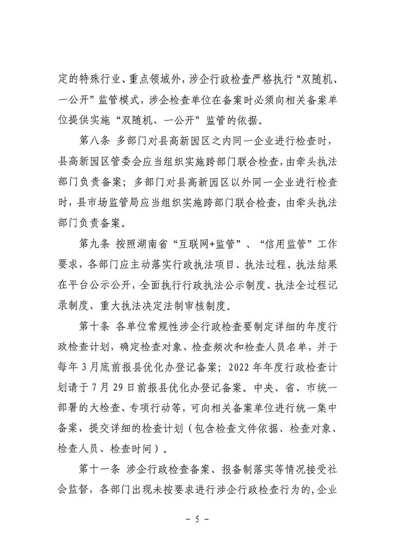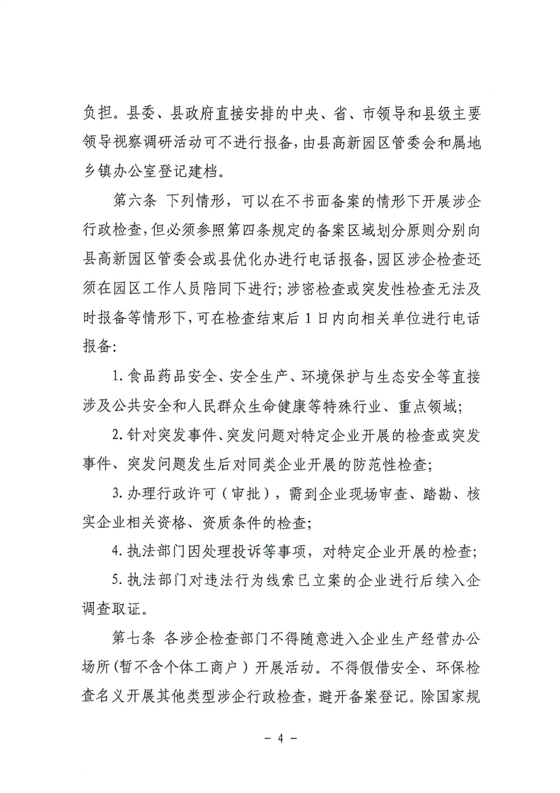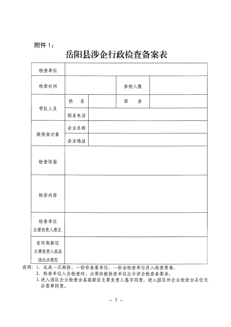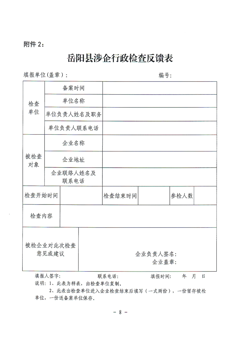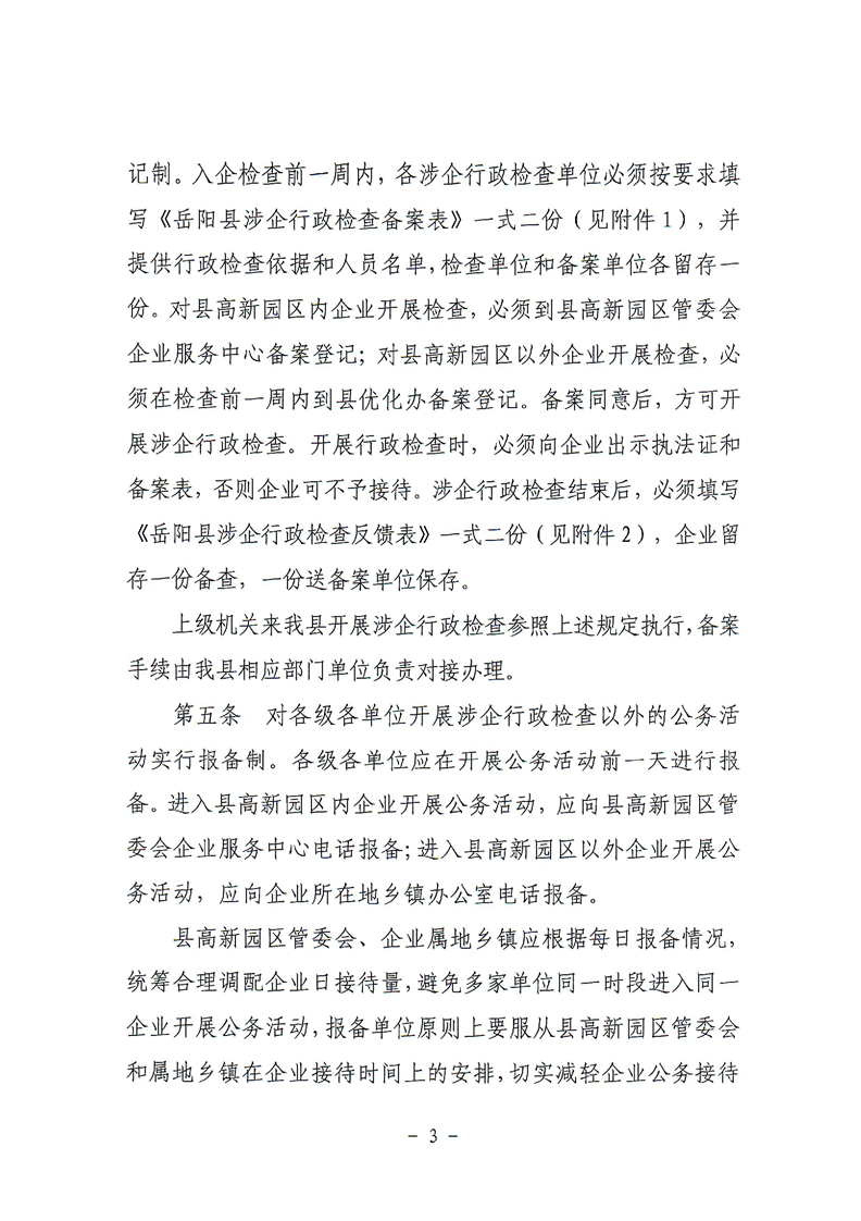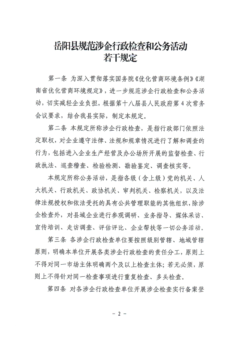 关于印发《岳阳县规范涉企行政检查和公务活动若干规定》的通知