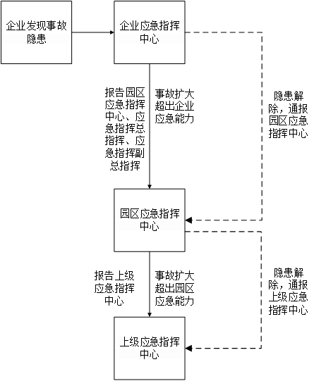 企业突发环境事件应急管理、应急预案编制等工作应接受园区应急指挥中心指导;园区内企业应急预案编制,应将本预案作为编制依据;园区内企业应及时将应急信息(环境风险源、风险防范措施、应急管理体系、应该处置队伍、应急物资信息等)上报园区应急指挥中心;企业应急预案突发环境事件分级参考本预案分级原则;企业突发环境事件预警行动、响应行动应与本预案相协调;企业突发环境事件应急处置方式应依照本预案的原则进行,并细化企业各应急队伍的职责和工作程序;企业应急演练和培训接受园区指导,并纳入园区应急演练和培训计划;企业突发环境事件应急结束后应向园区应急指挥中心汇报。