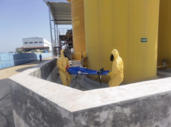 县委常委、副县长贺立,高新园区管委会主任姚正大,县应安委办主任、县应急管理局局长高兴球等领导出席活动。此次活动由岳阳县应急和安全生产委员会主办,岳阳高新技术产业园区、岳阳慧璟新材料有限公司、岳阳市生态环境局岳阳县分局、岳阳县应急管理局等单位承办。本次演练模拟岳阳慧璟新材料有限公司液碱贮存区现场工作员工彭兴望在操作液碱罐底部进行阀门开启作业时,突发阀门底部锈蚀脱落,导致大量碱液泄漏溢出至罐区地面并流入公司雨水沟,可能造成人员伤伤亡和环境污染,公司紧急启动突发环境事件应急预案以及生产安全事故应急预案,进行紧急应急处置。本次演练活动共分为分应急处置组、专家咨询组、应急监测组、事故调查组、医疗救护组、信息报送组、后勤保障组等七个小组。