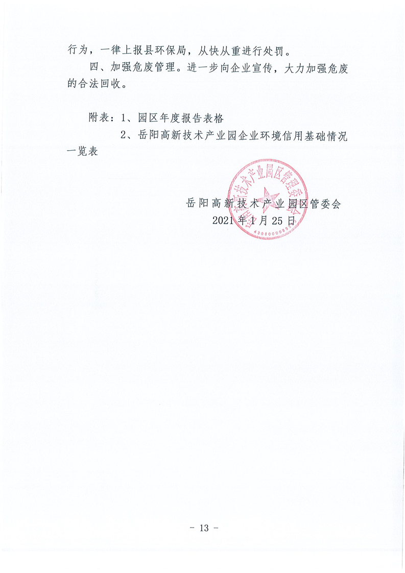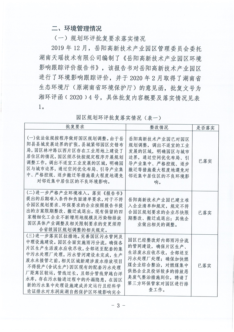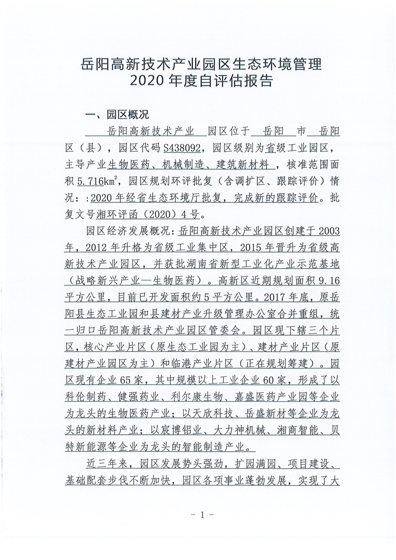 岳阳高新技术产业园区生态环境管理2020年度自评估报告
