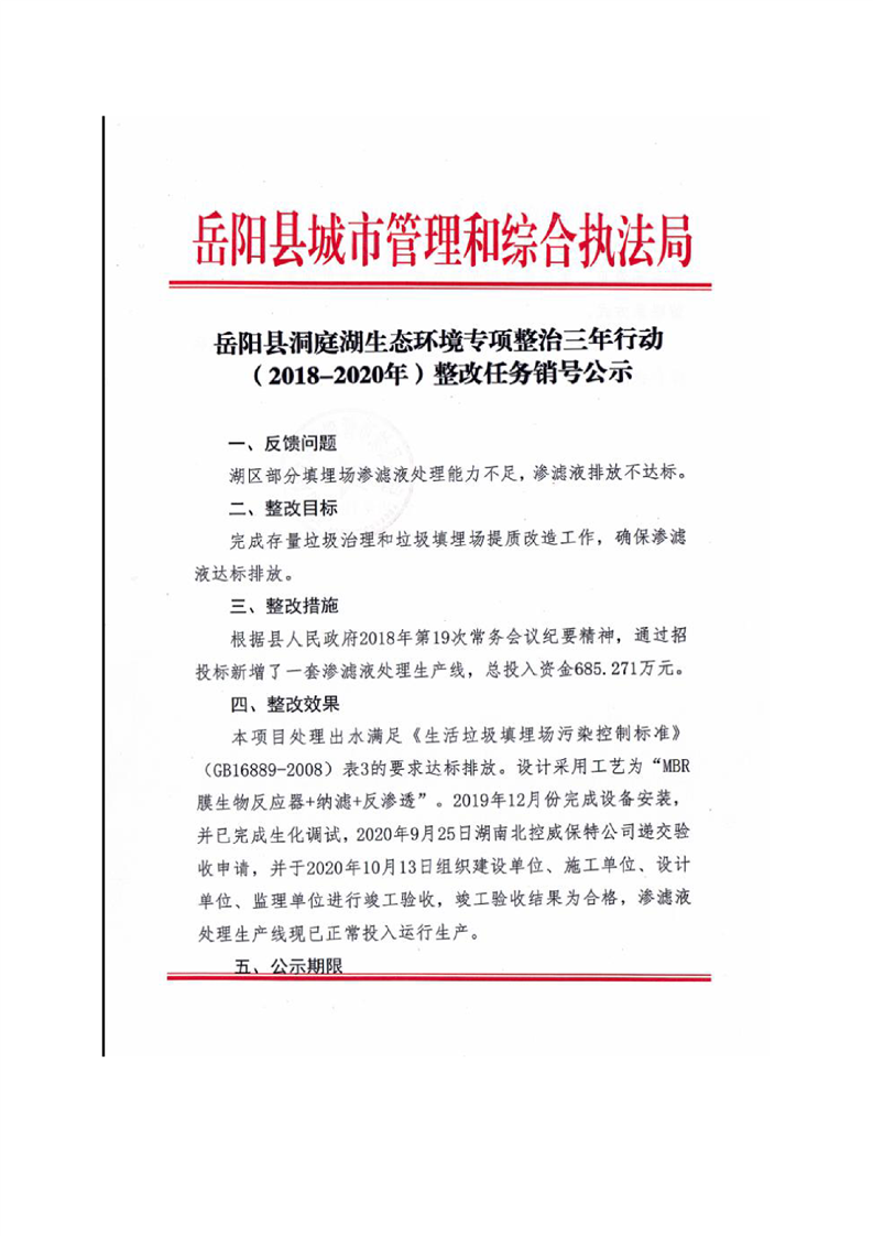 岳阳县洞庭湖生态环境专项整治三年行动(2018-2020)整改任务销号公示2