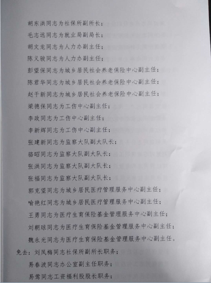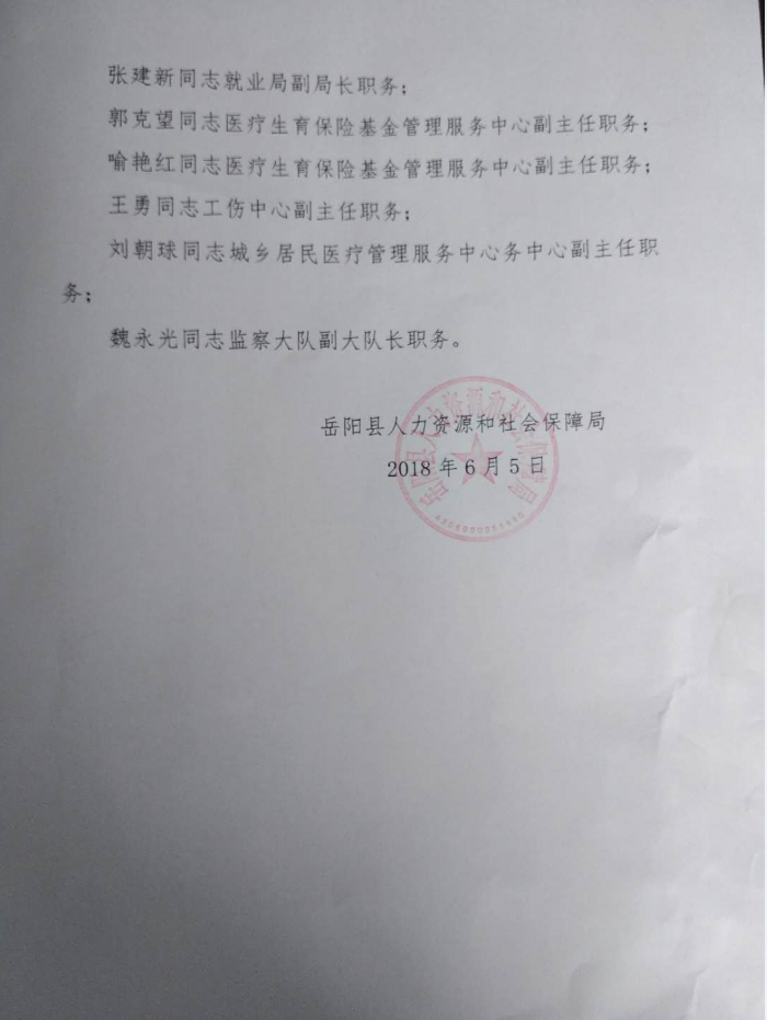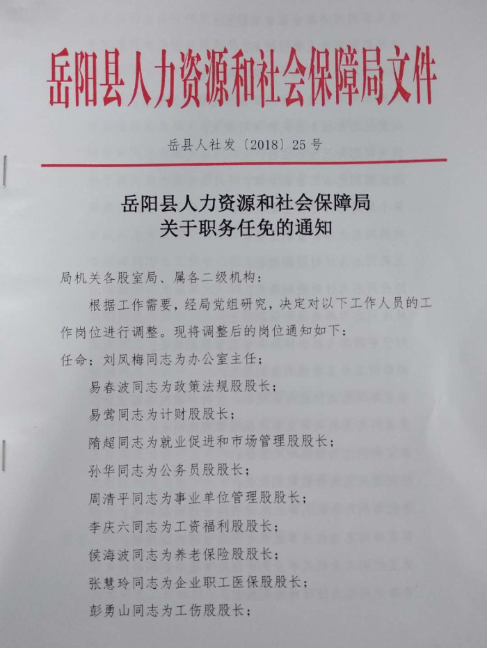 岳阳县人力资源和社会保障局关于职务任免的通知