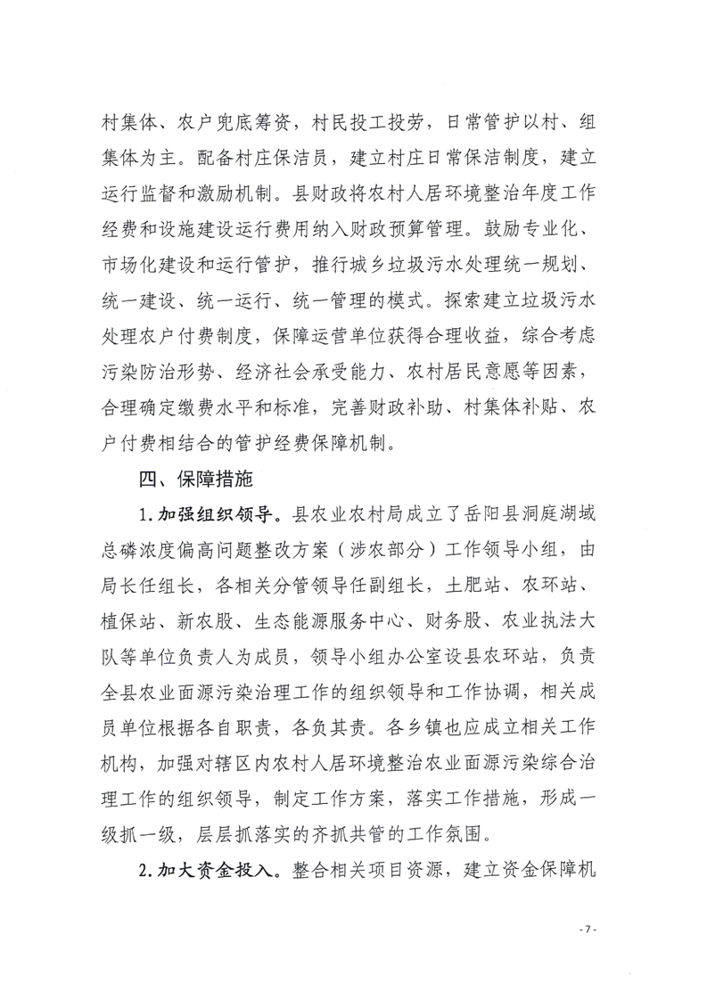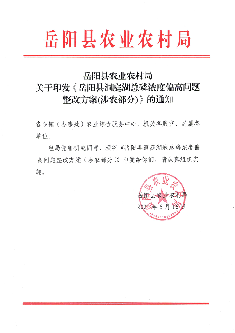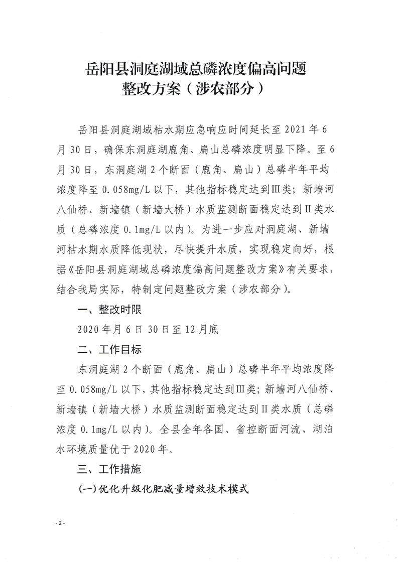 岳阳县洞庭湖总磷浓度偏高问题整改方案(涉农部分)