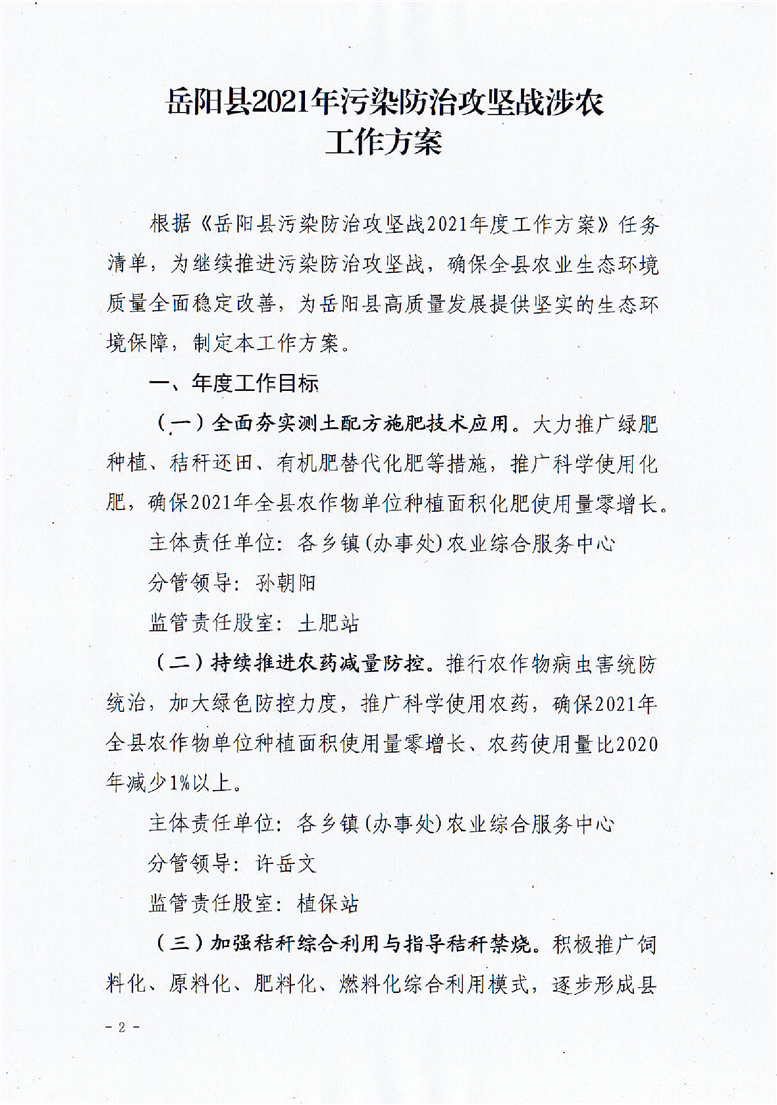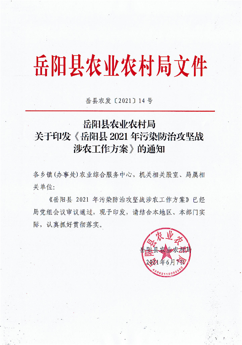 岳阳县2021年污染防治攻坚战涉农工作方案
