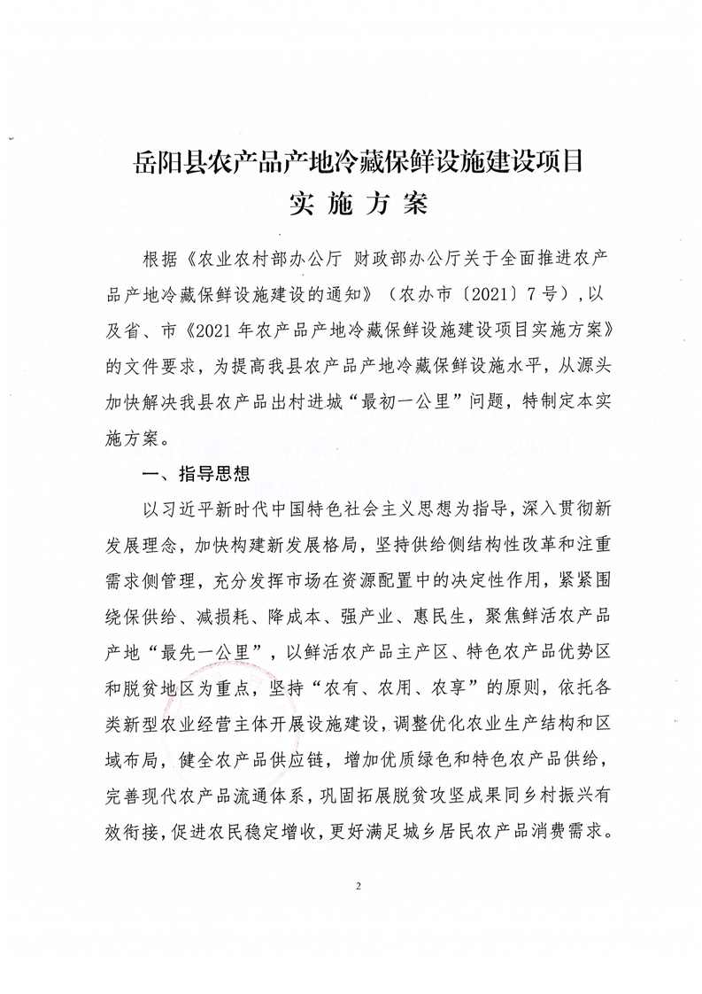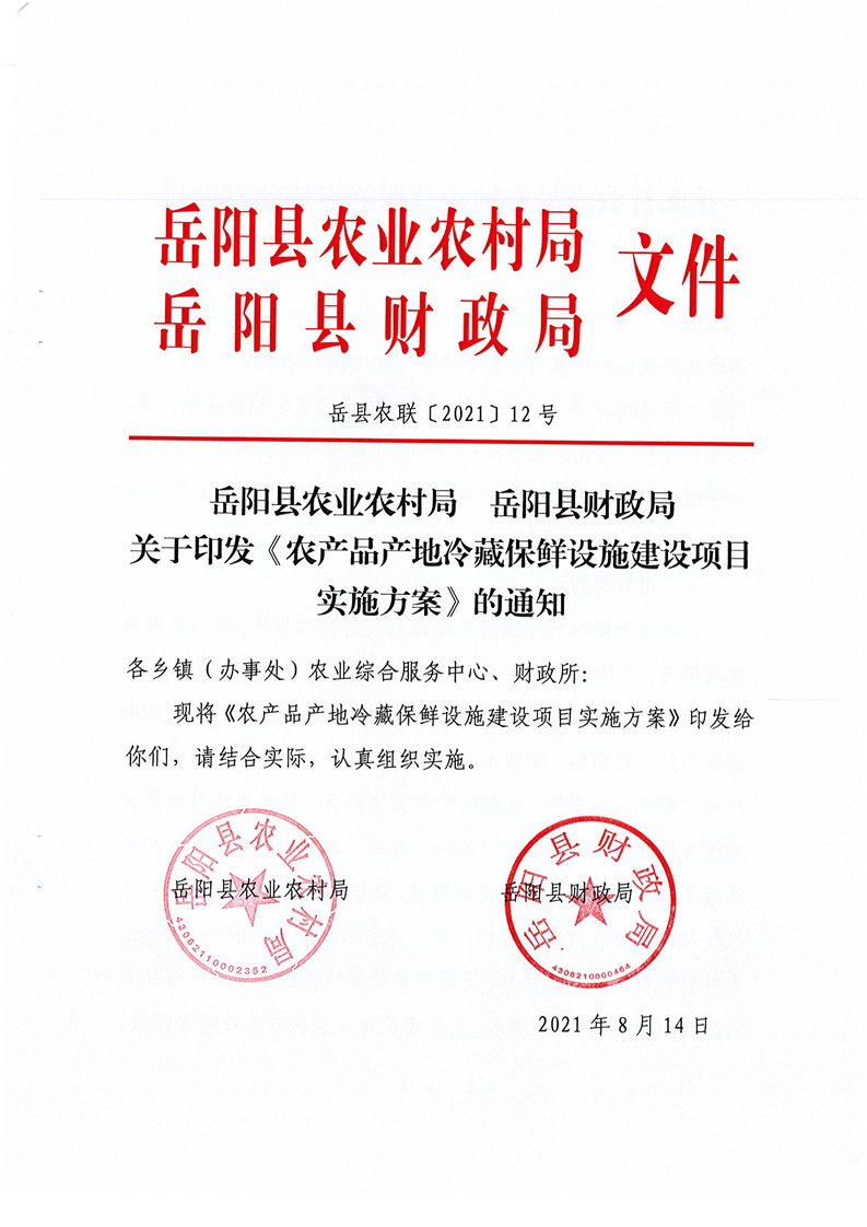 关于印发《农产品产地冷藏保鲜设施建设项目实施方案》的通知