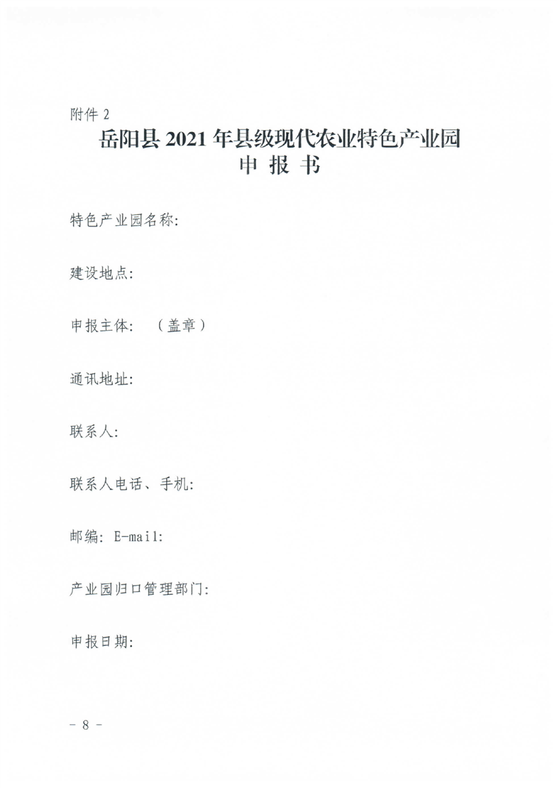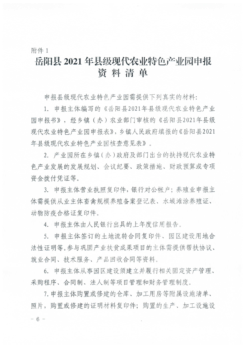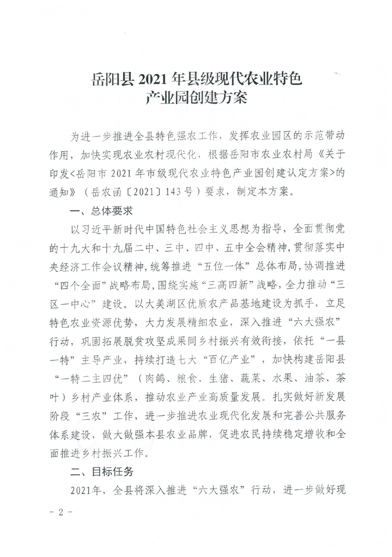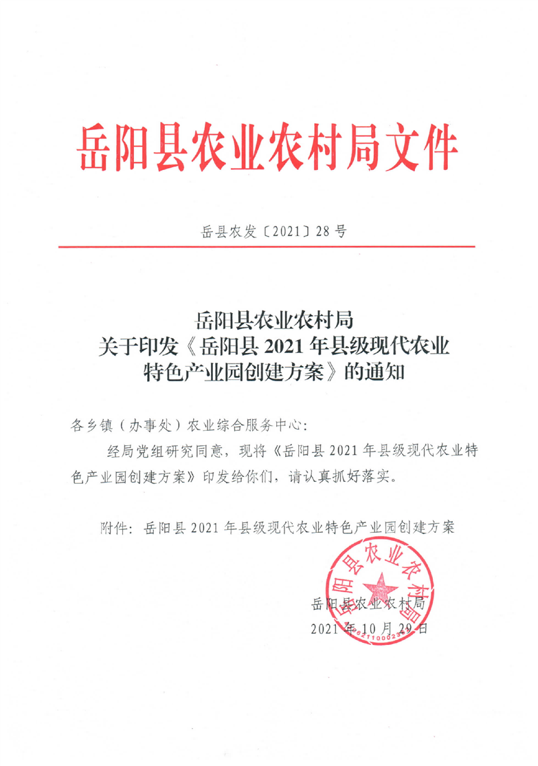 岳阳县2021年县级现代农业特色产业园创建方案