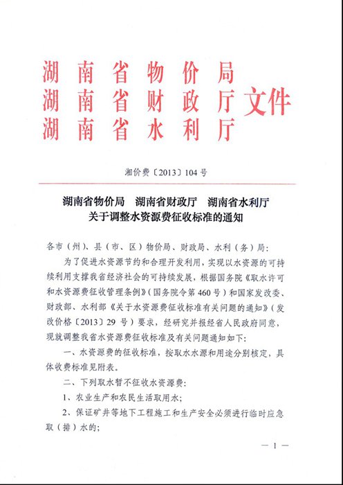 关于调整水资源费征收标准的通知