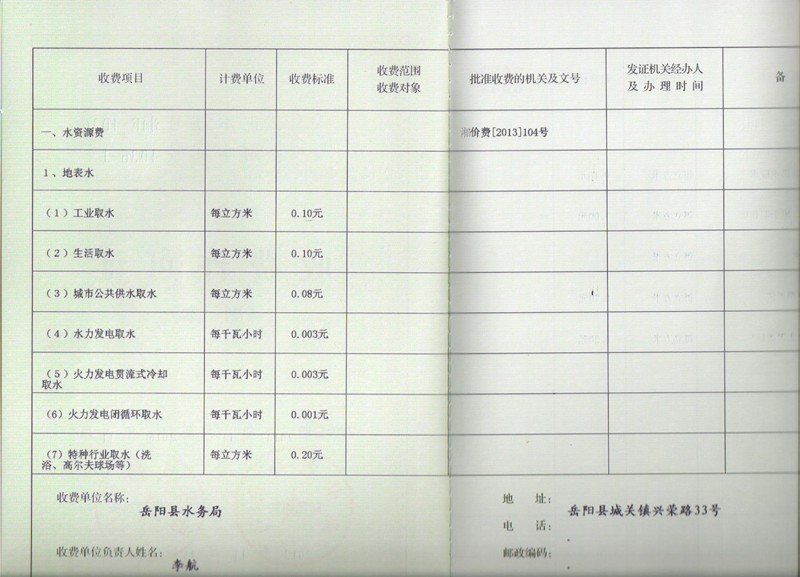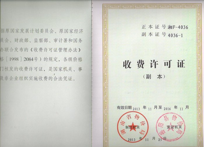 收费许可证
