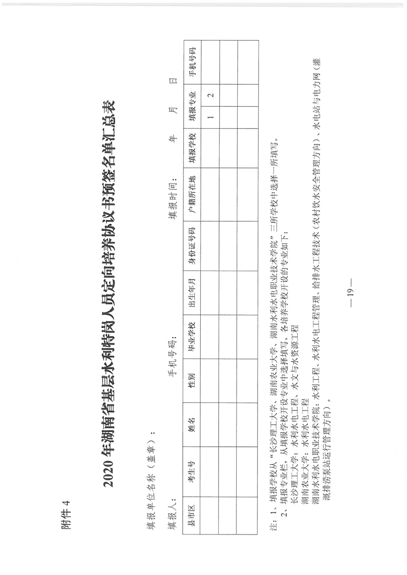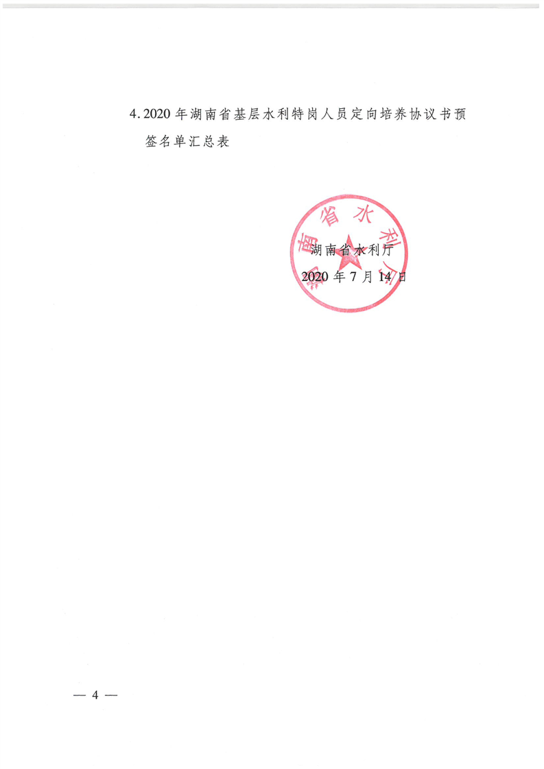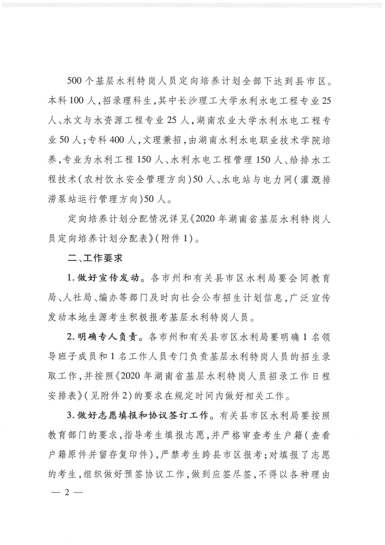 湖南省水利厅《关于下达2020年基层水利特岗人员定向培养计划的通知》