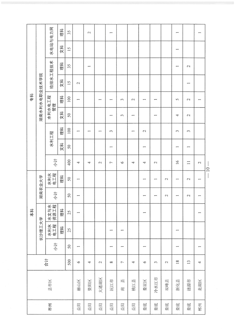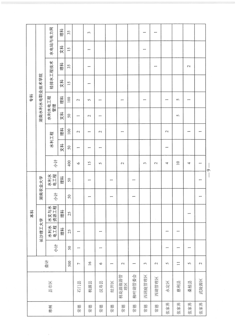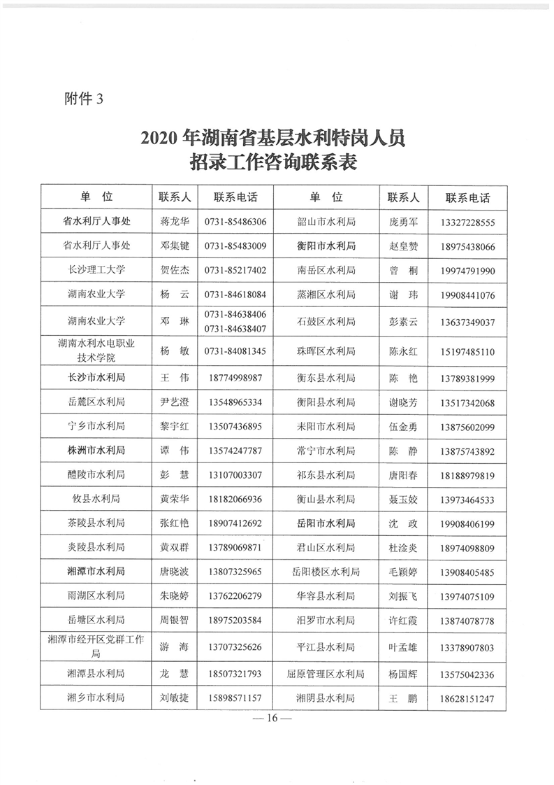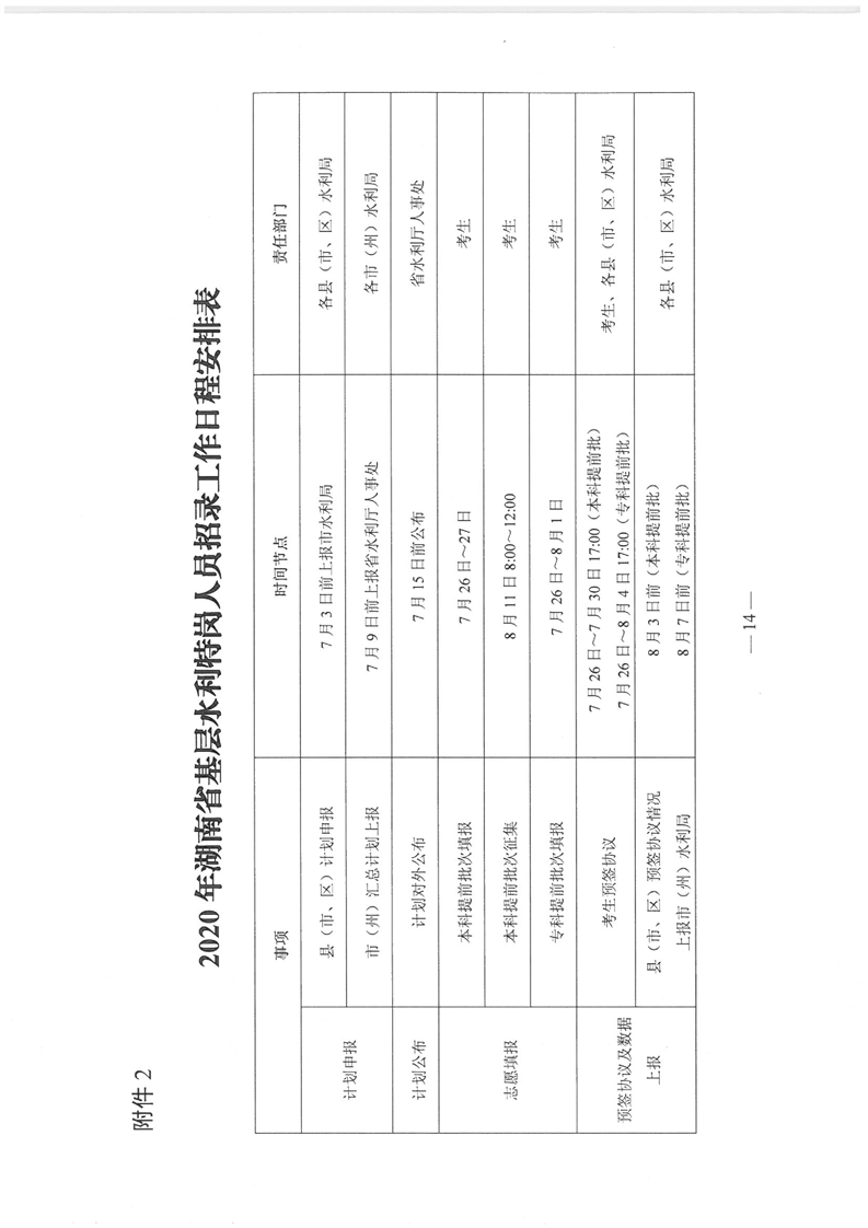 湖南省水利厅《关于下达2020年基层水利特岗人员定向培养计划的通知》