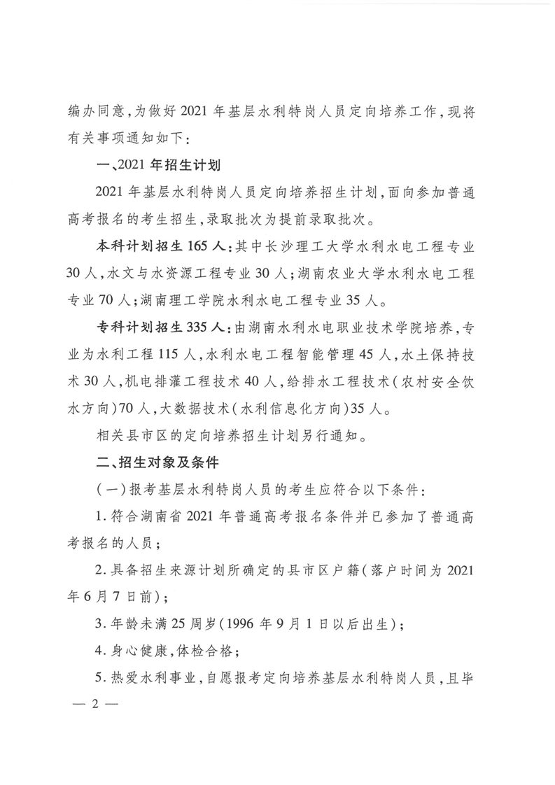 关于做好2021年基层水利特岗人员定向培养工作的通知