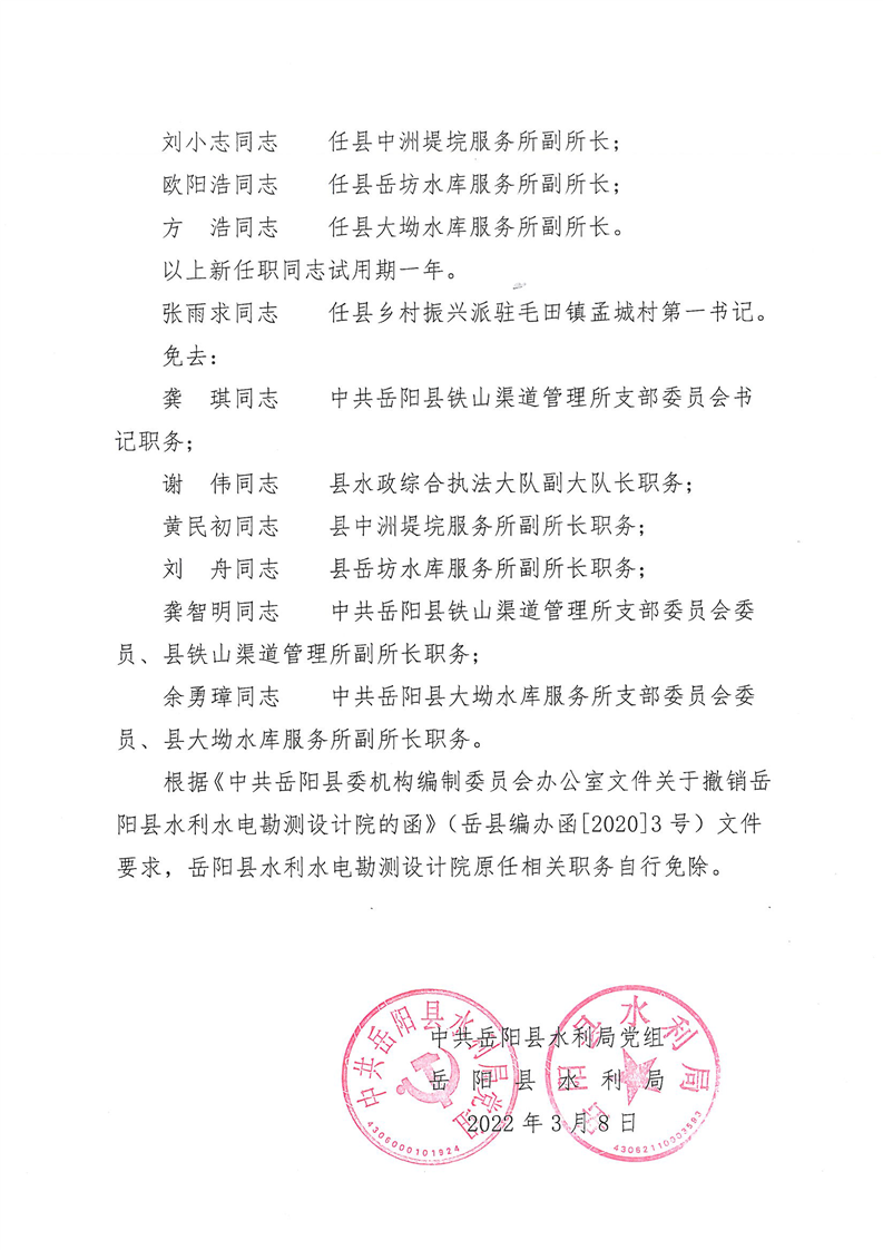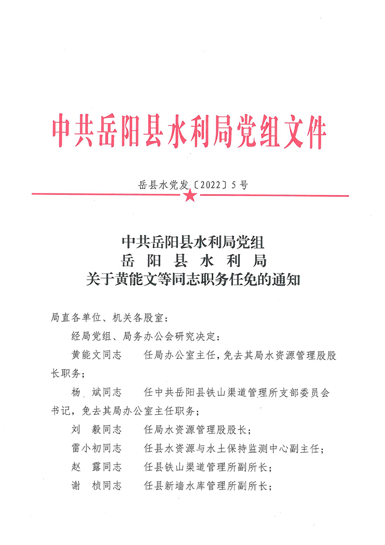 岳阳县水利局关于黄能文等同志职务任免的通知