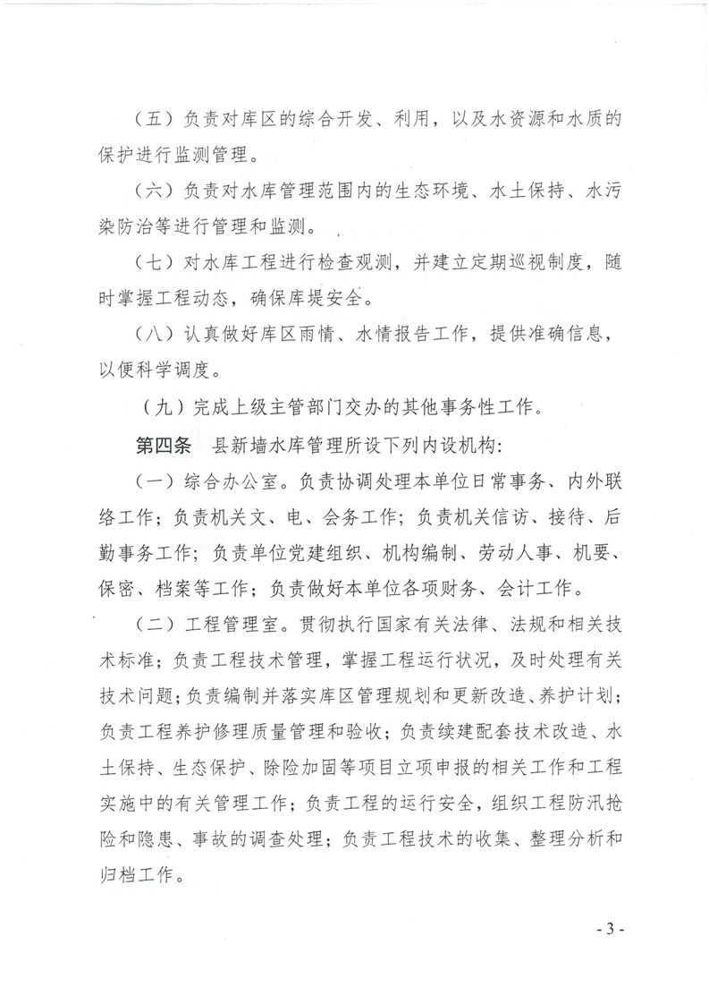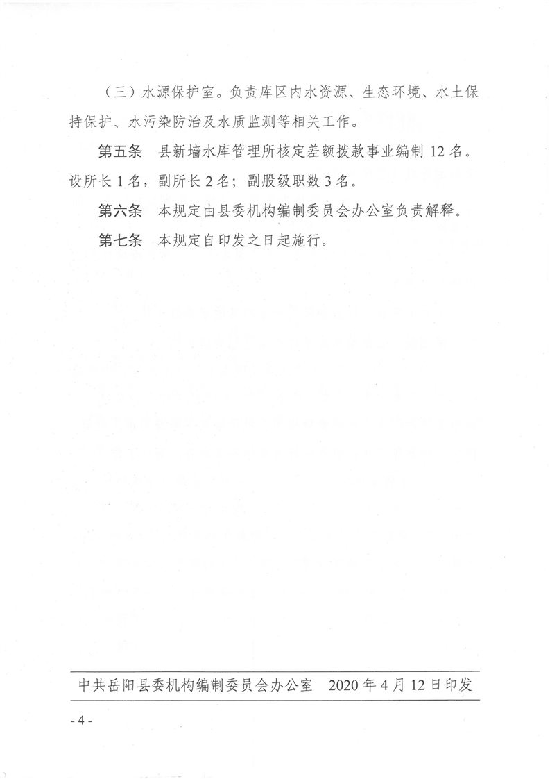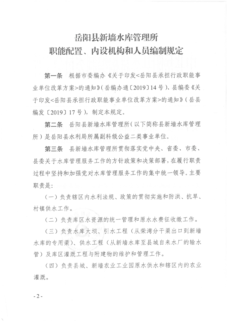 岳阳县新墙水库管理所职能配置、内设机构和人员编制规定