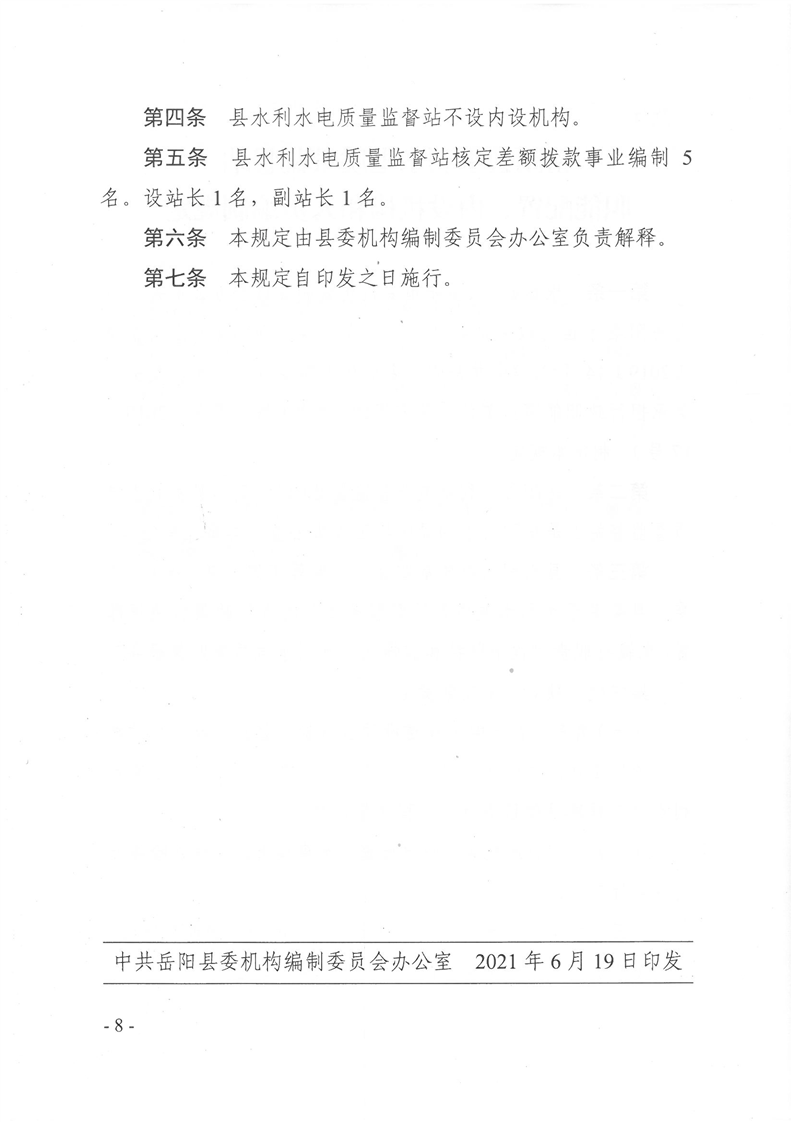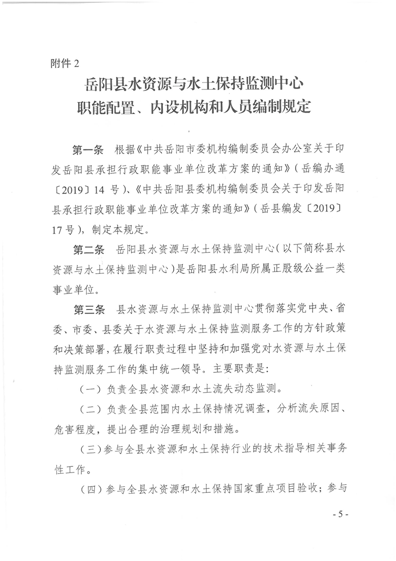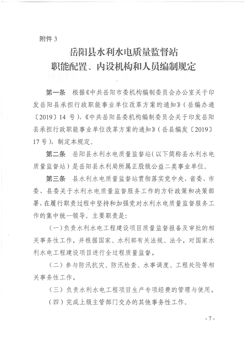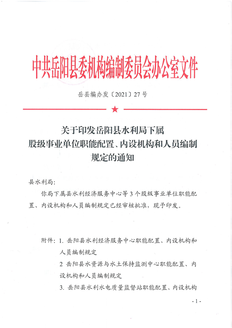 岳阳县县水利经济服务中心、岳阳县水资源与水土保持监测中心、岳阳县水利水电质量监督站职能配置、内设机构和人员编制规定