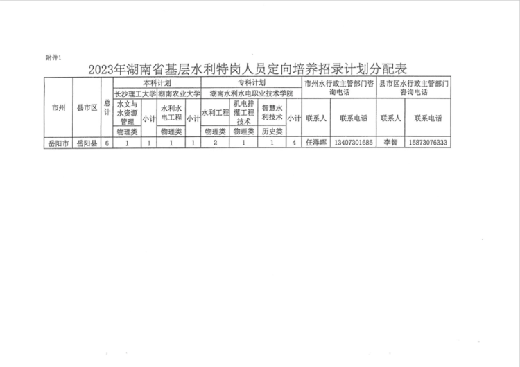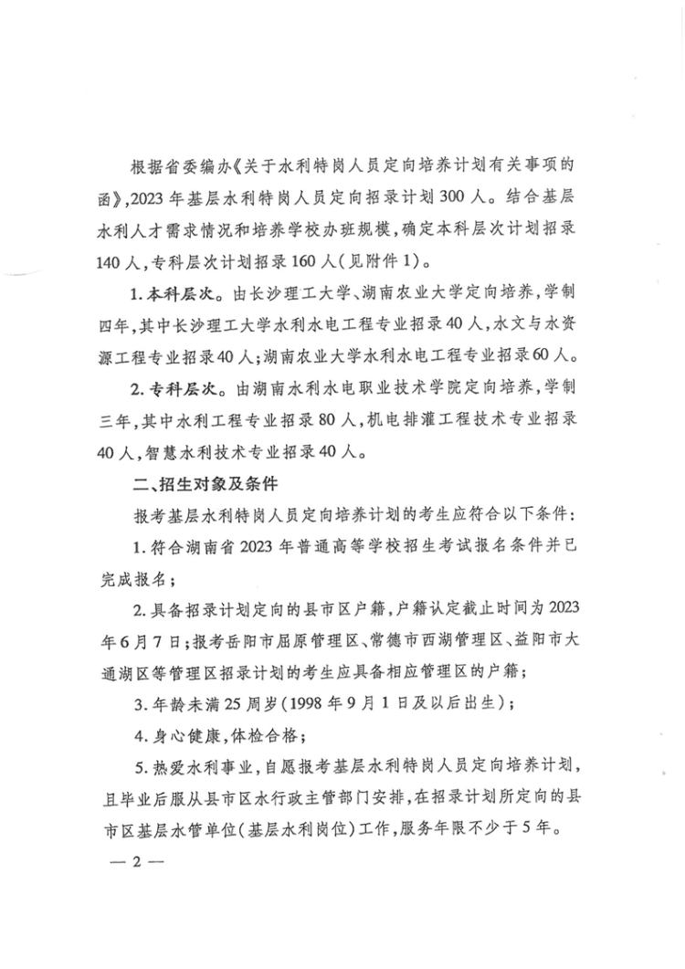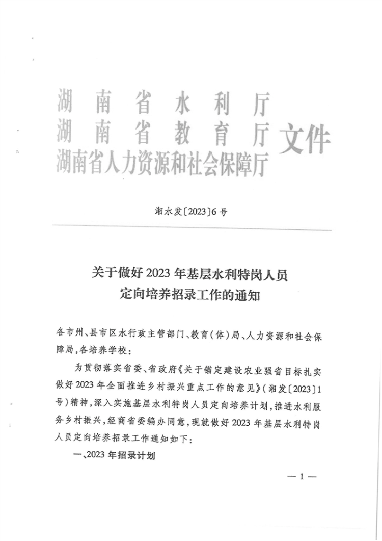 关于做好2023年基层水利特岗人员定向培养招录工作的通知
