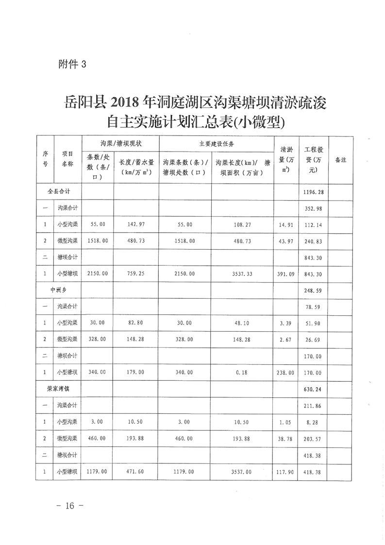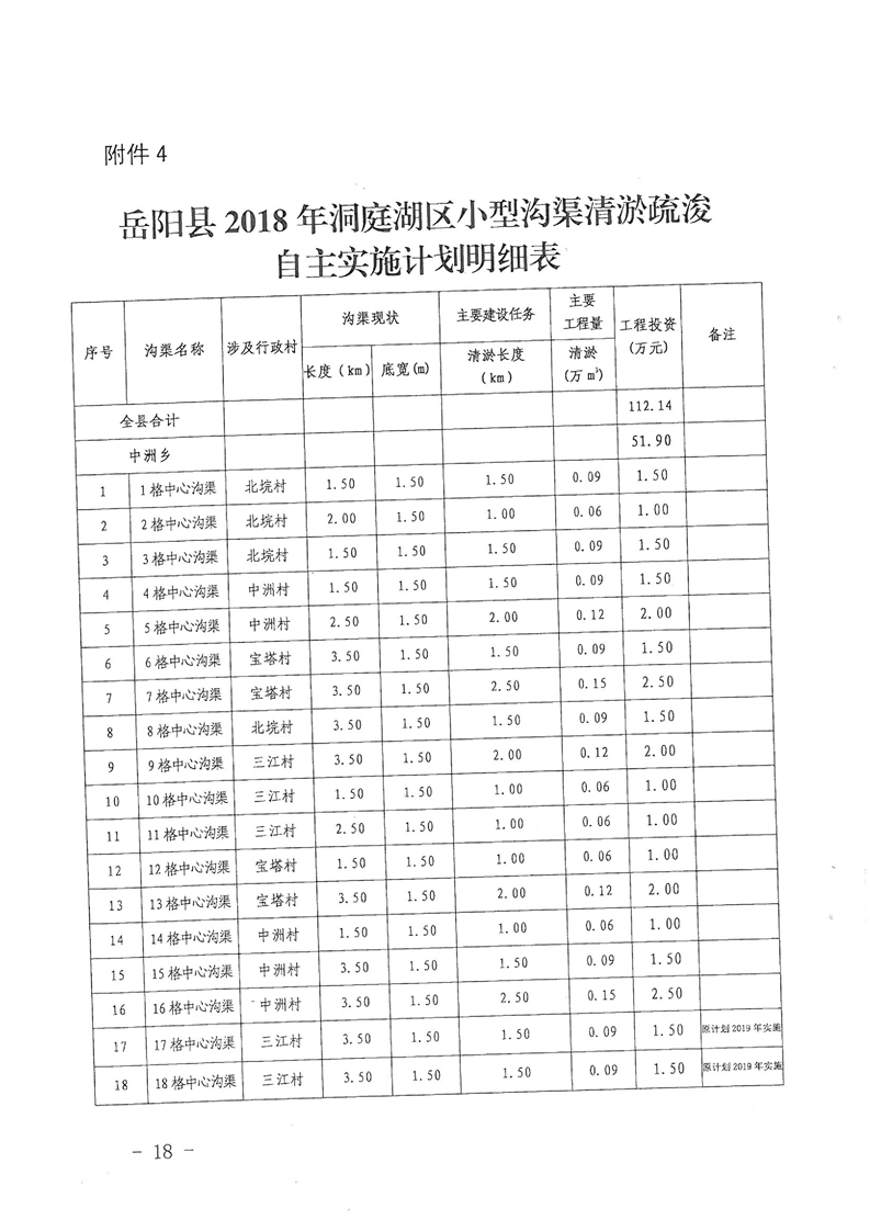 岳阳县2018年洞庭湖区沟渠塘坝清淤疏浚实施计划