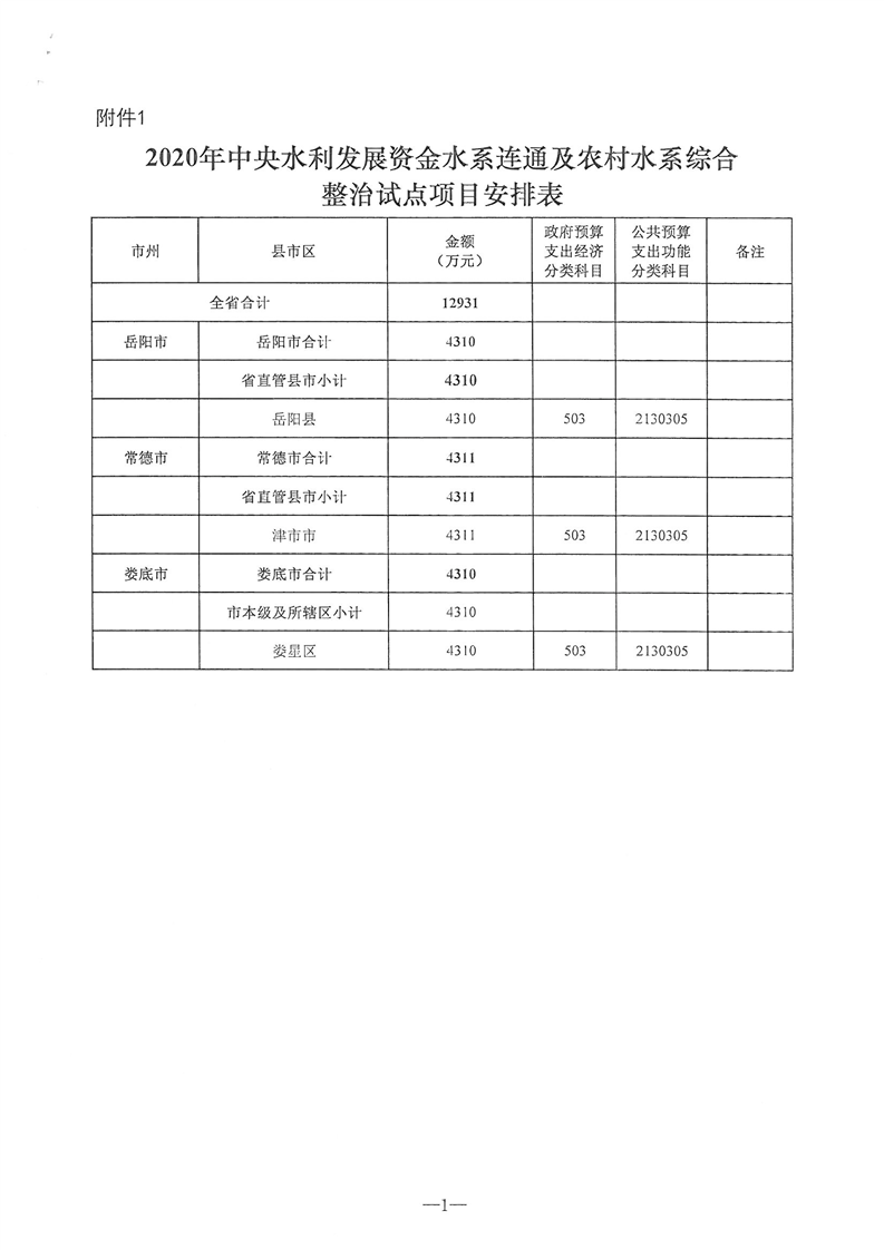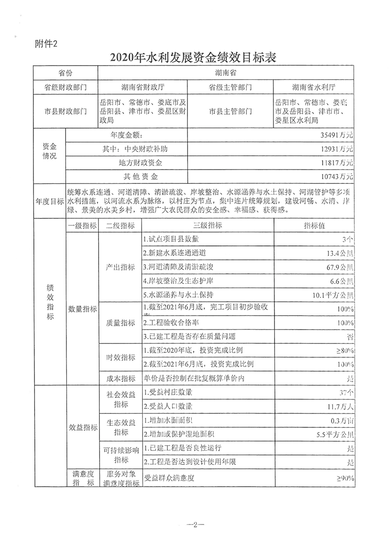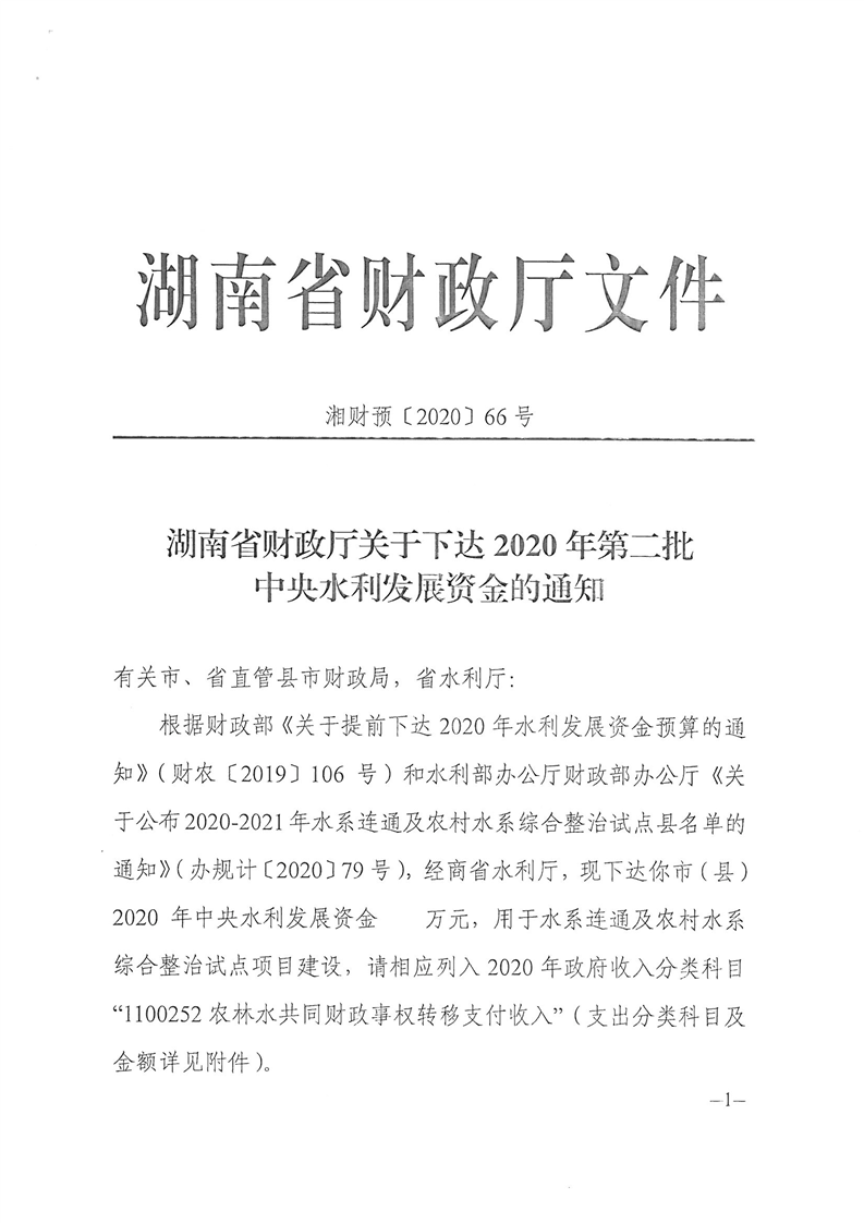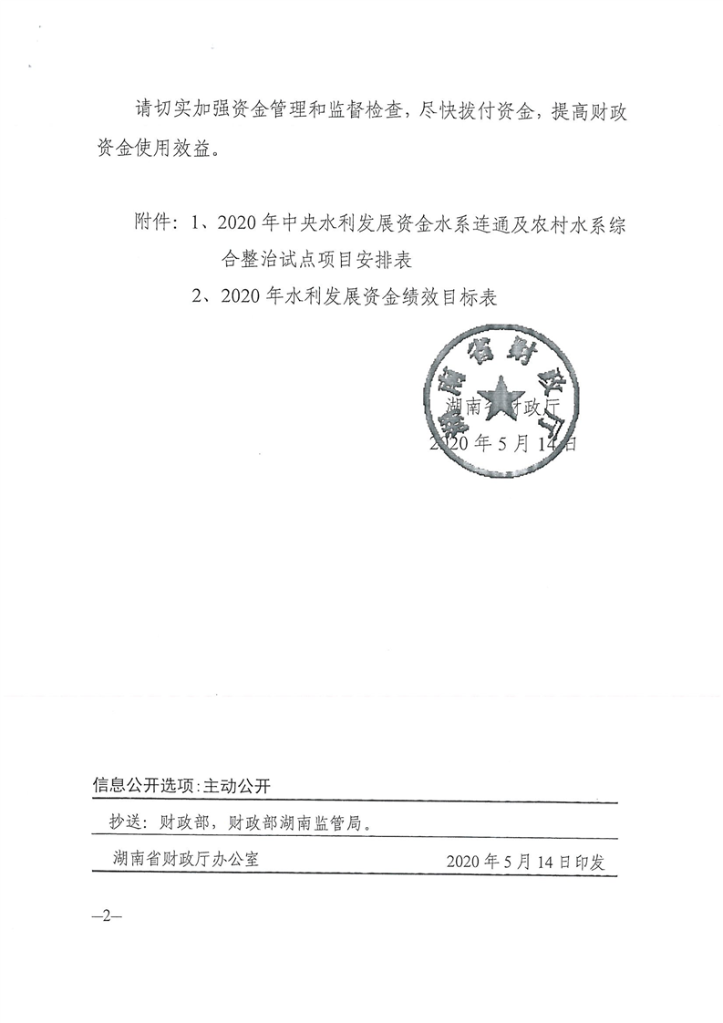 湖南省财政厅关于下达2020年第二批中央水利发展资金的通知