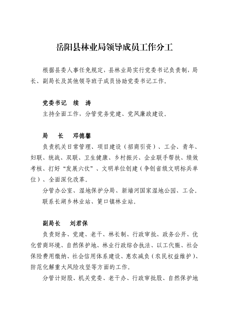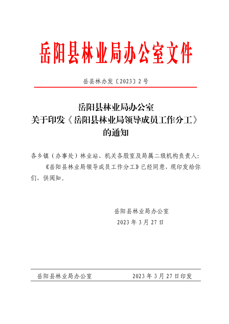 关于印发《岳阳县林业局领导成员工作分工》的通知