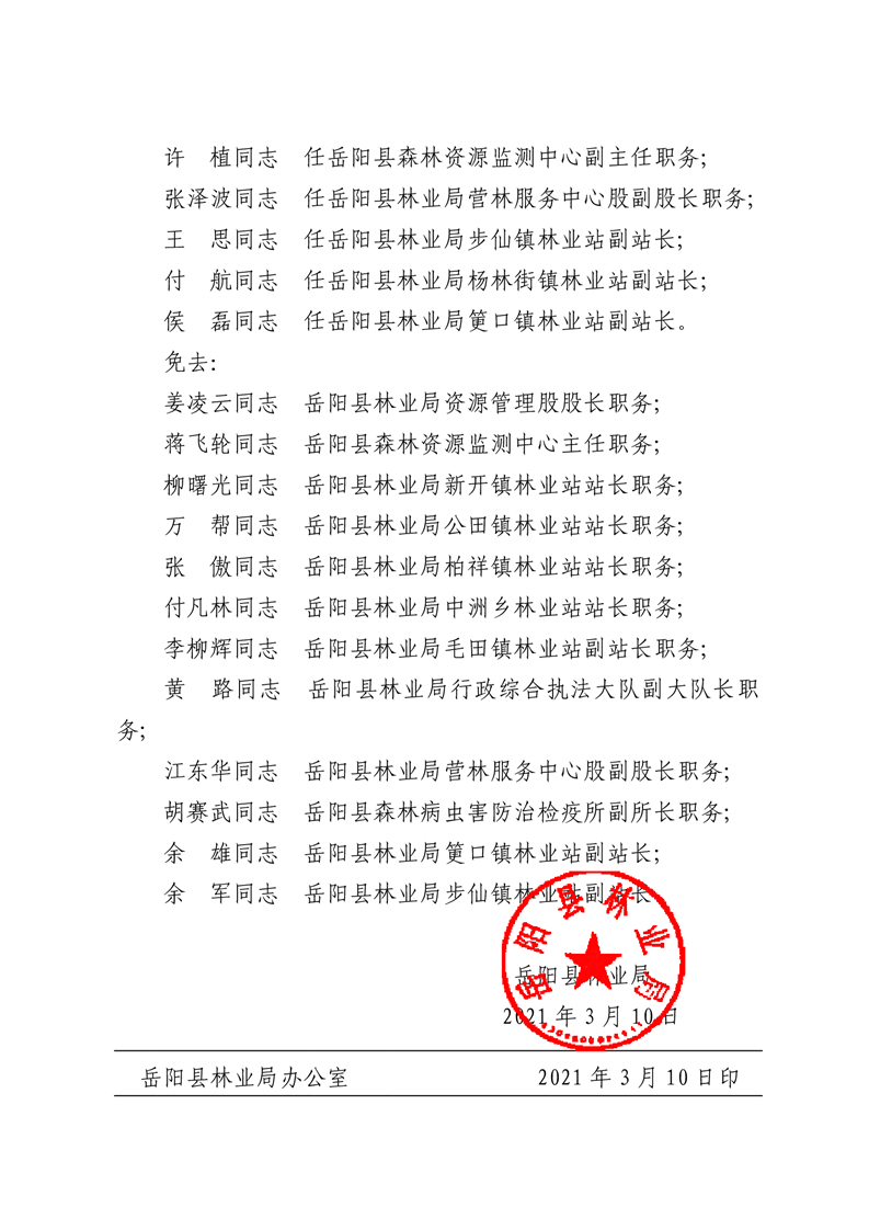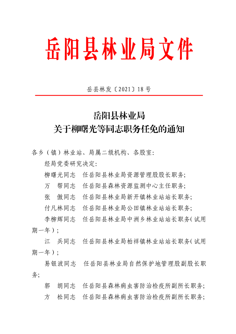 岳阳县林业局关于柳曙光等同志职务任免的通知