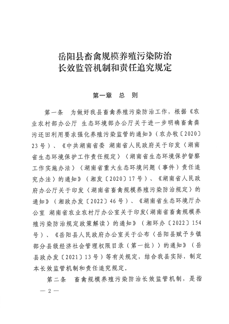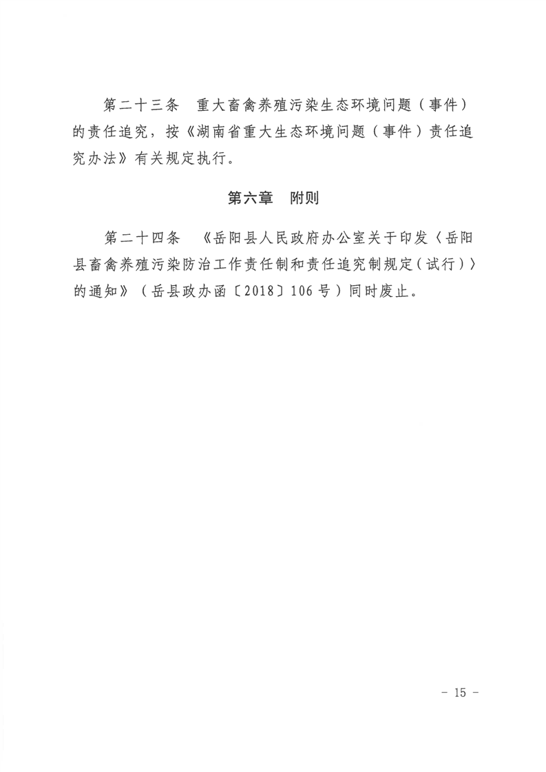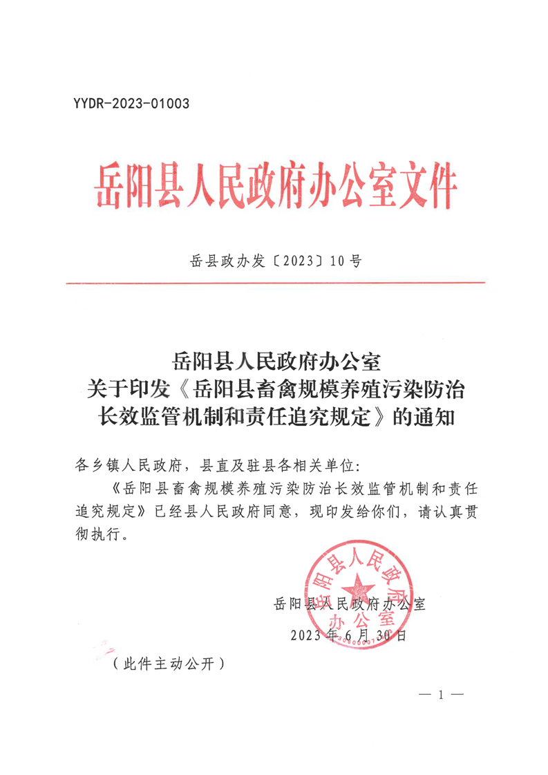 岳阳县人民政府关于印发《岳阳县畜禽规模养殖污染防治长效监管机制和责任追究规定》的通知