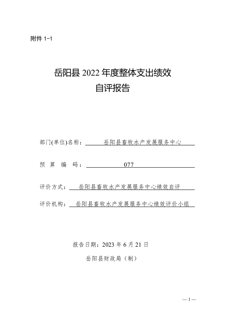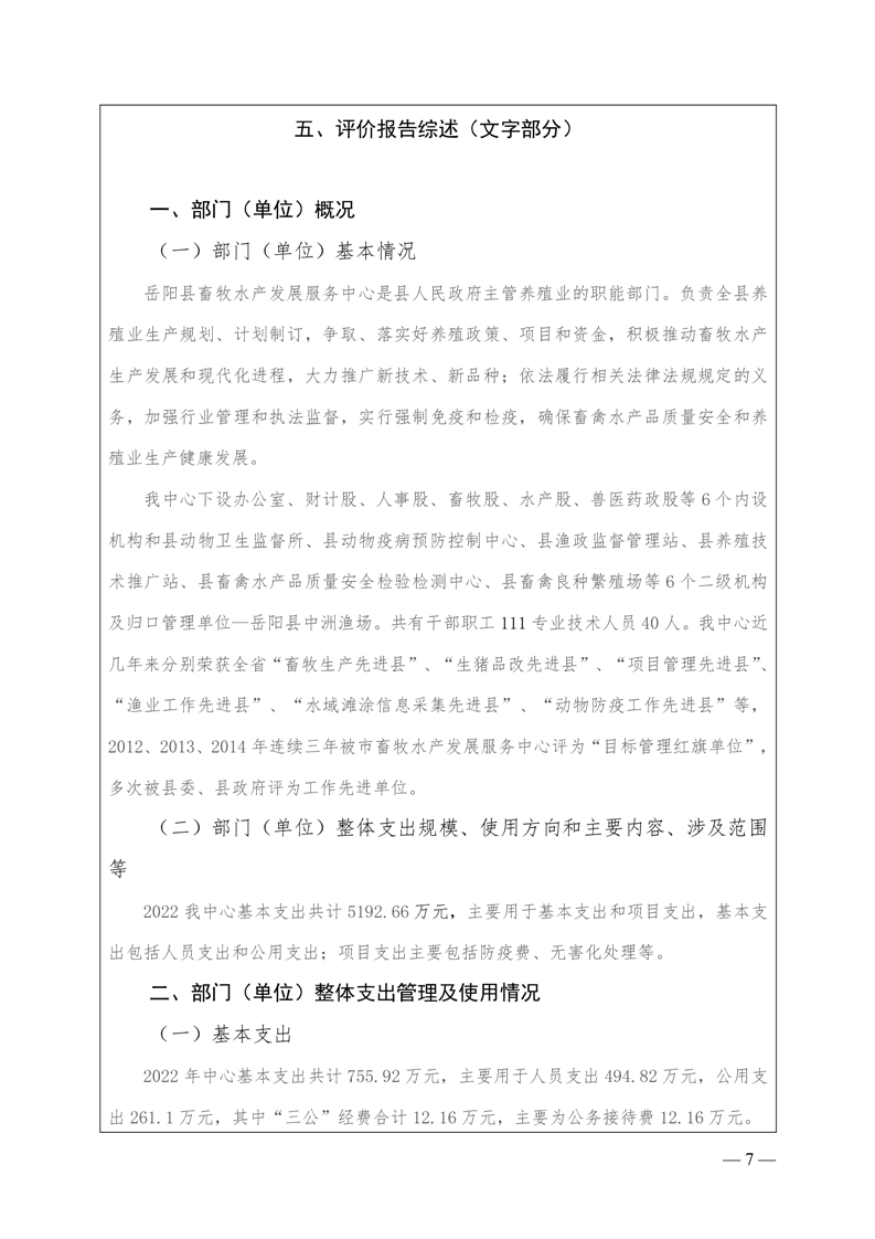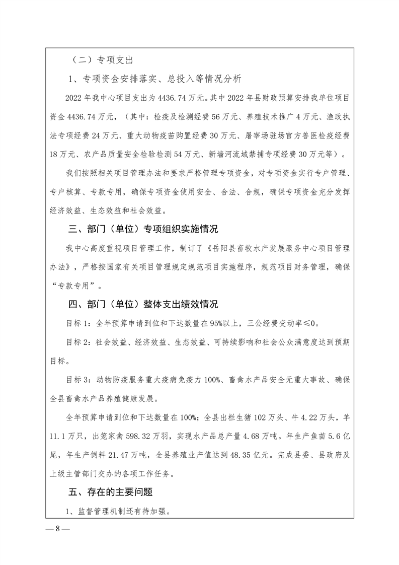 岳阳县2022年度整体支出绩效自评报告(县畜牧水产发展服务中心)