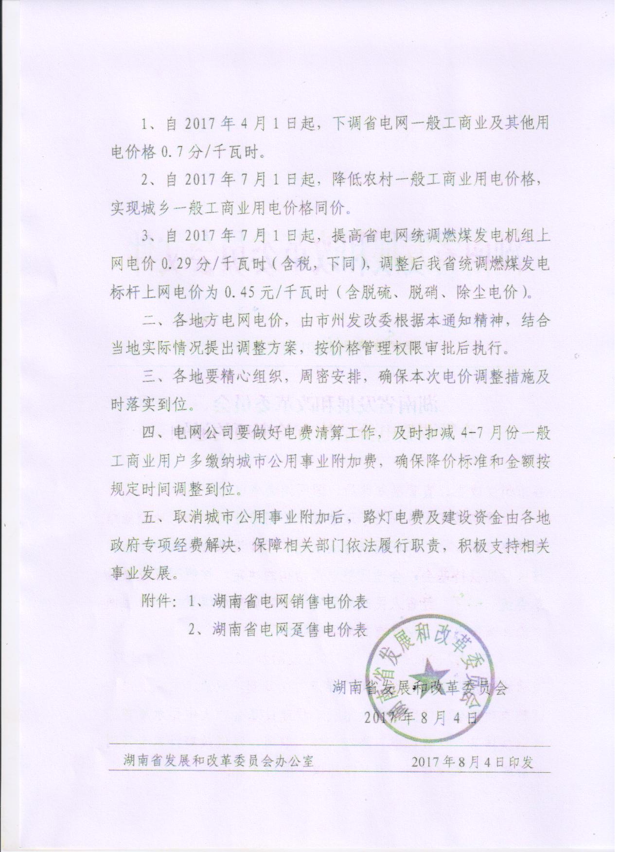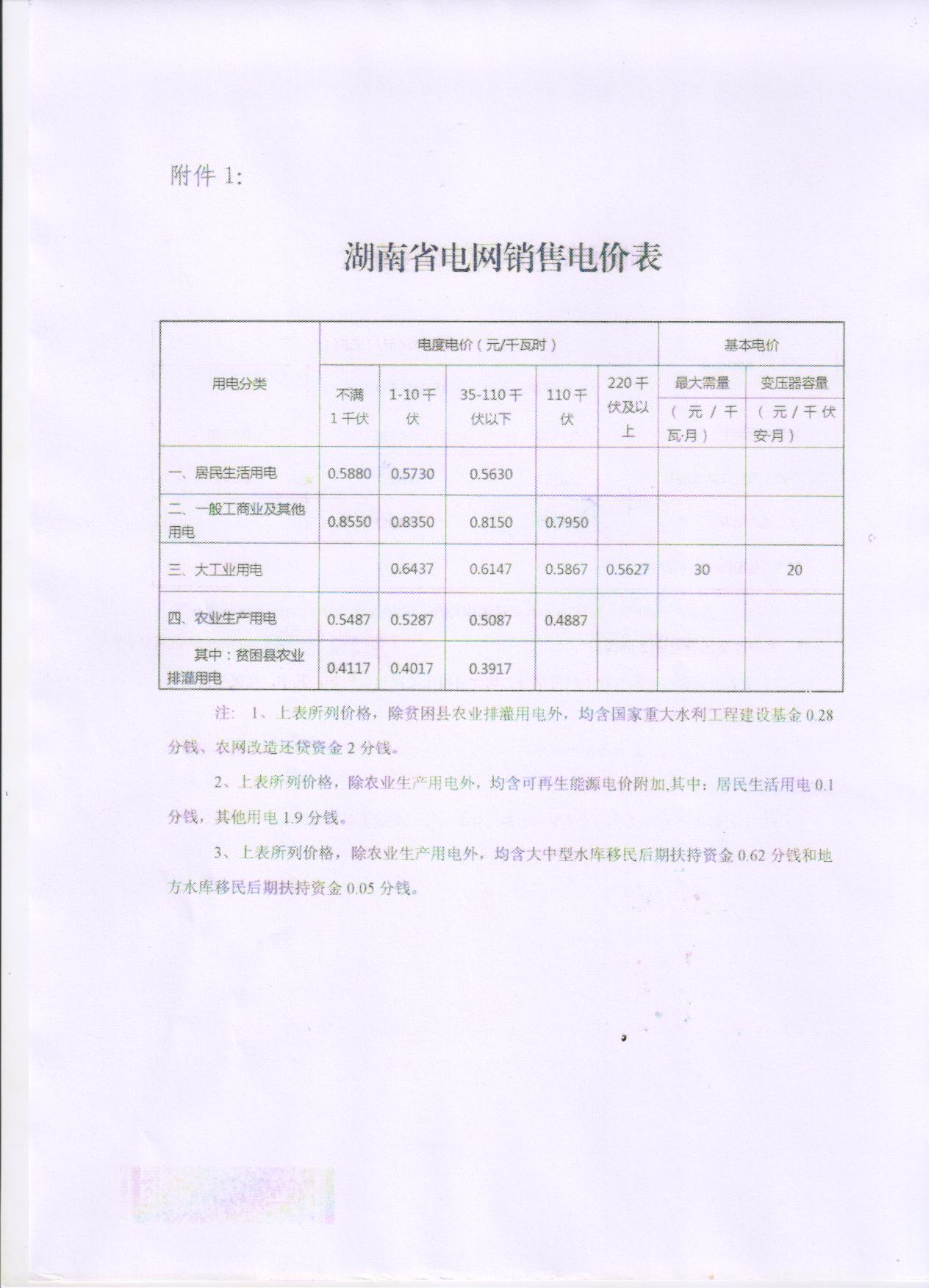 湖南省发展和改革委员会关于调整电价结构有关事项的通知