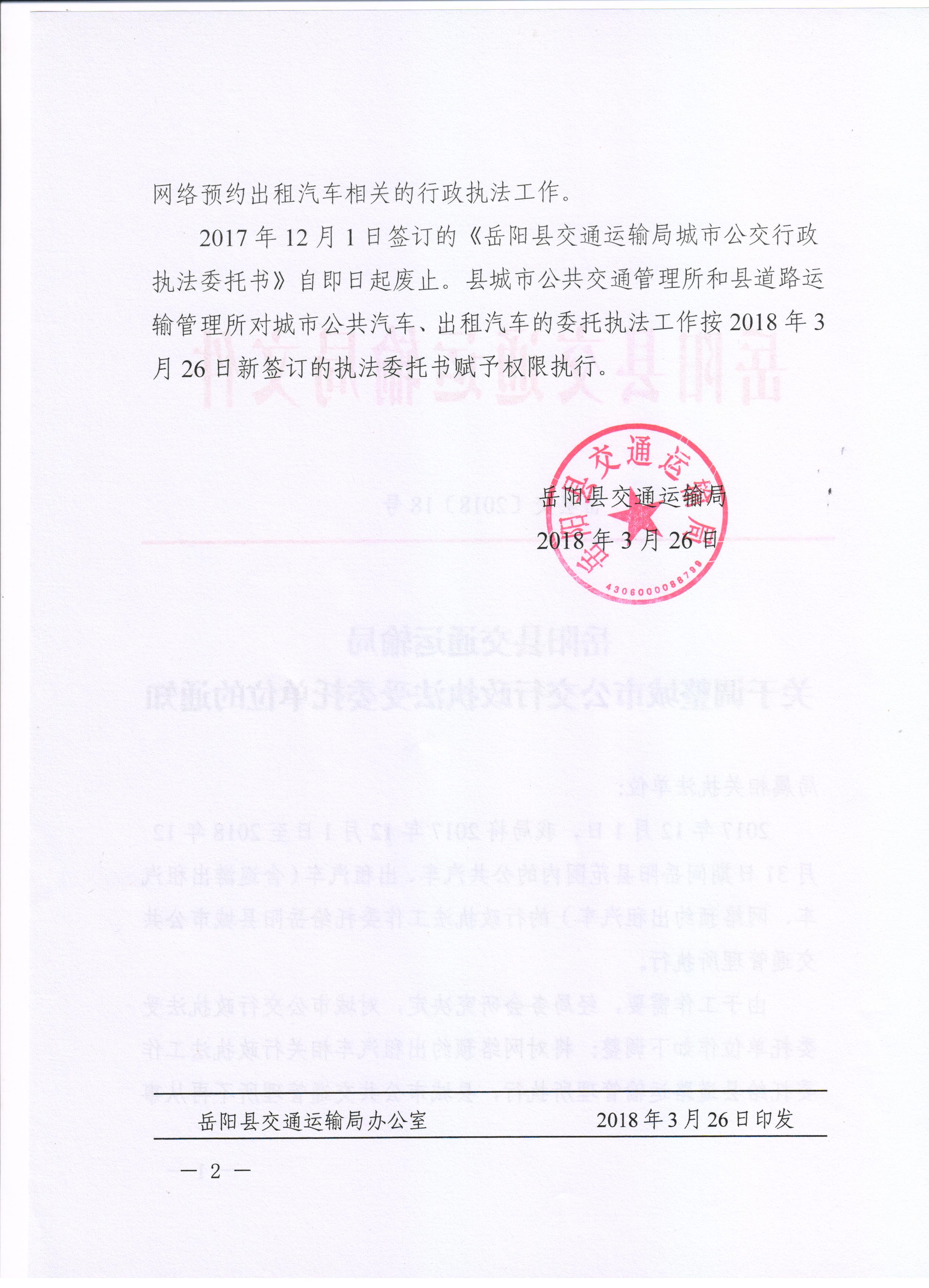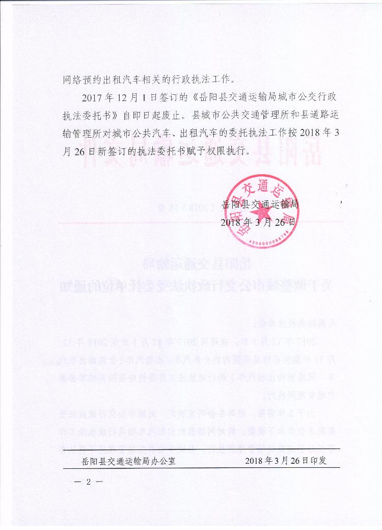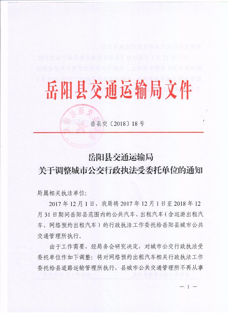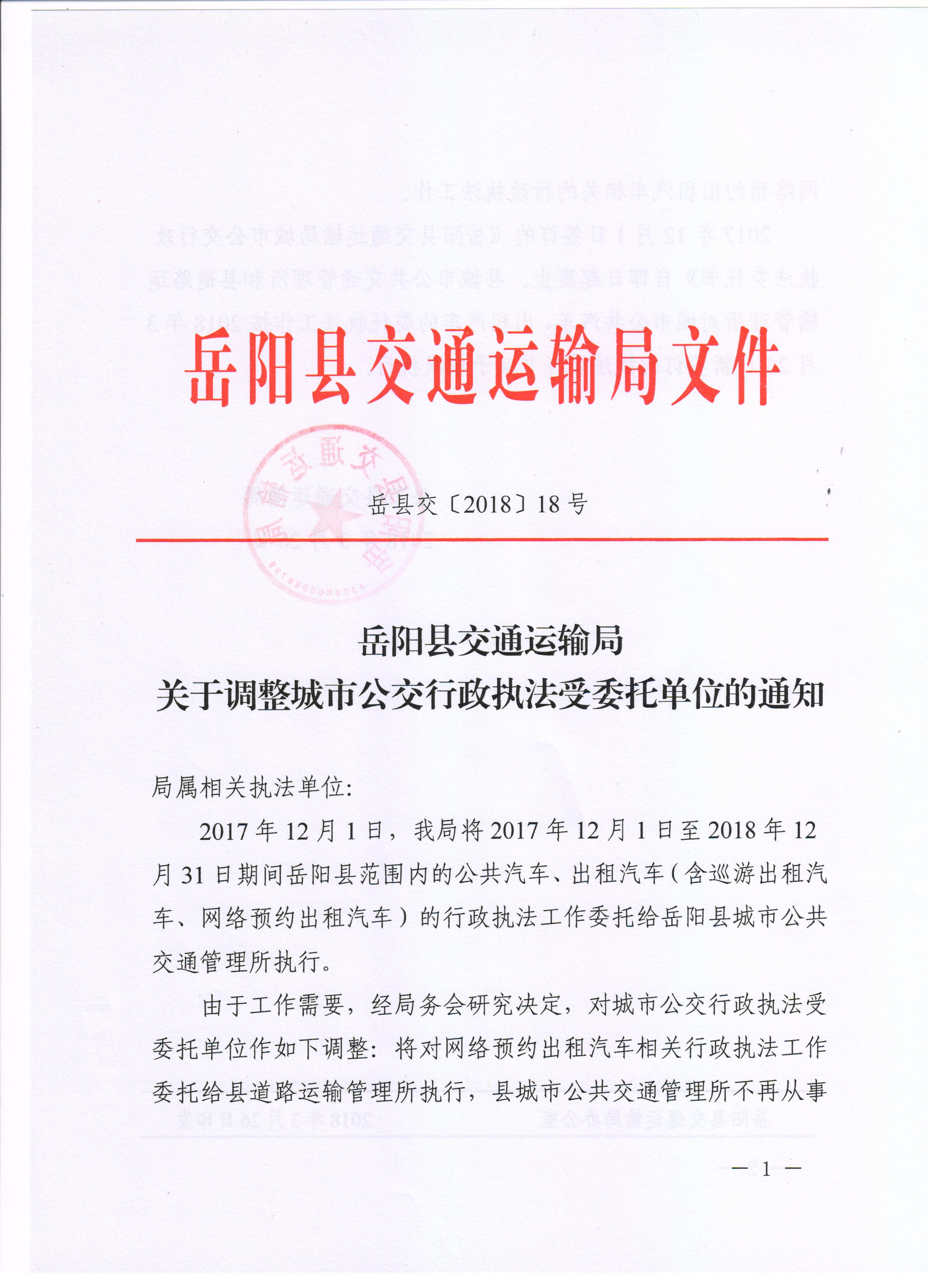 岳阳县交通运输局关于调整公交行政执法受委托单位的通知