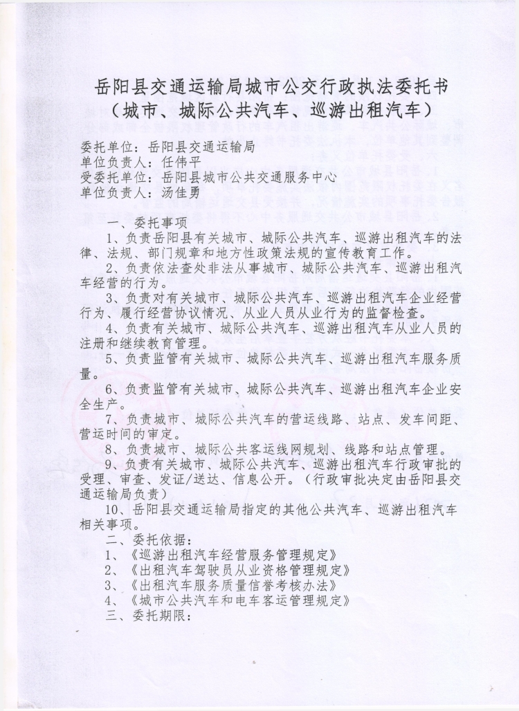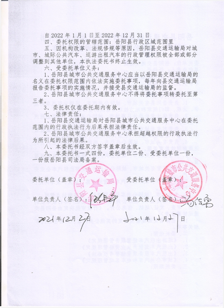 岳阳县交通运输局城市公交行政执法委托书(2022年)
