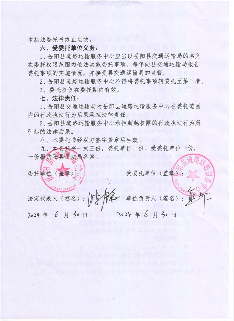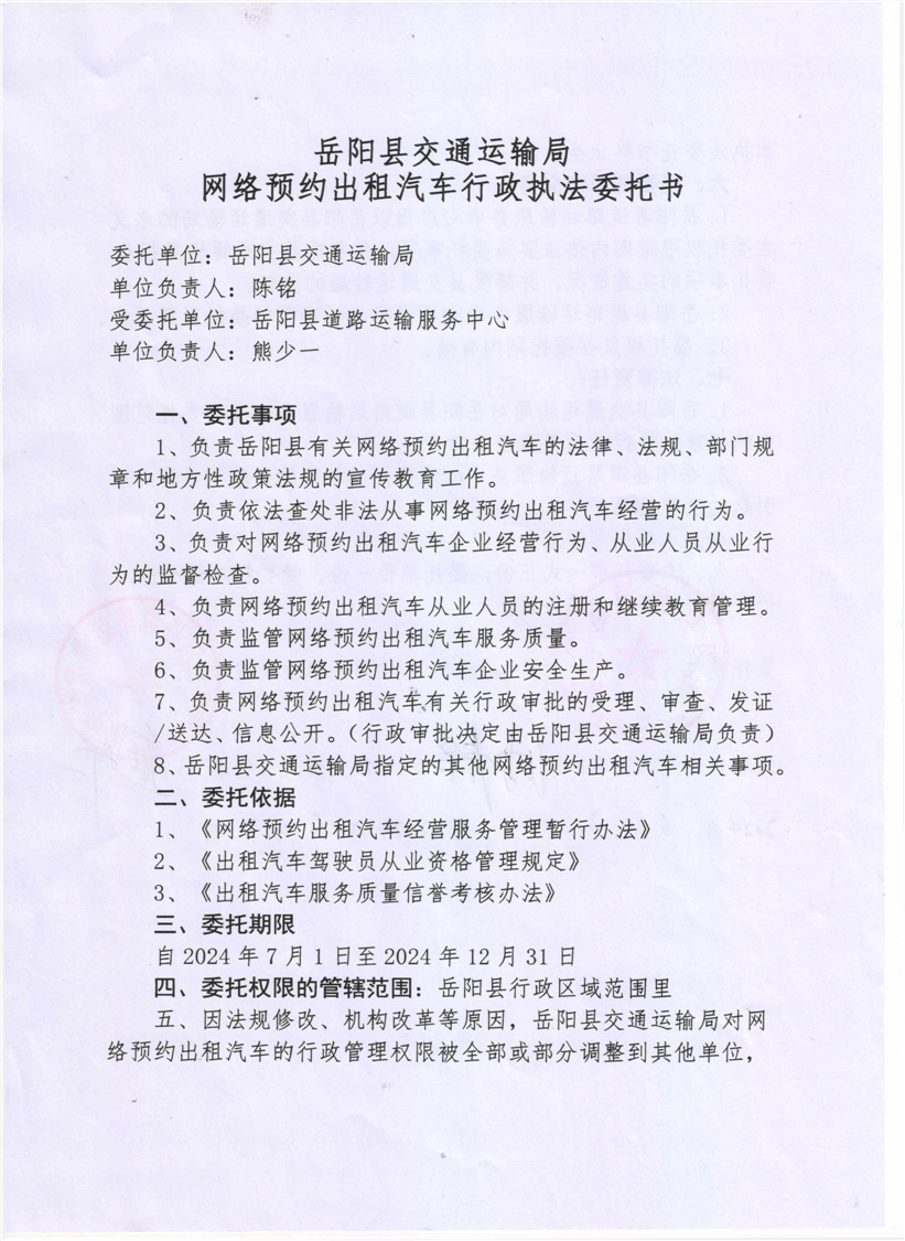 岳阳县交通运输局网络预约出租车行政执法委托书(20240701-20241231)