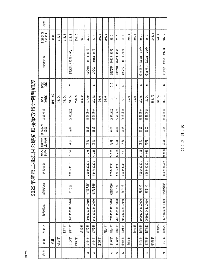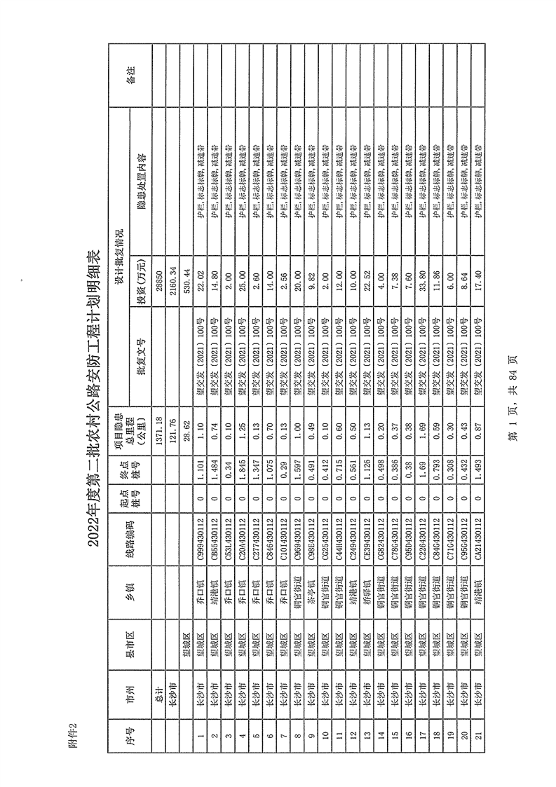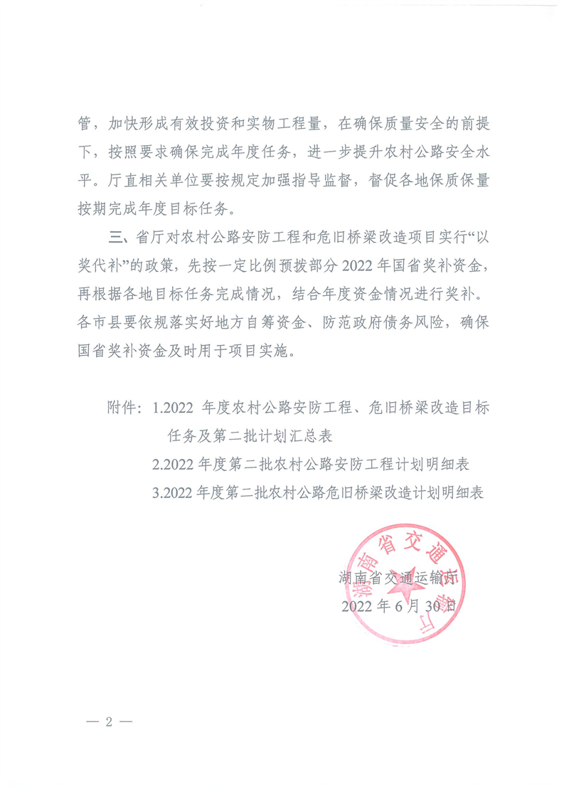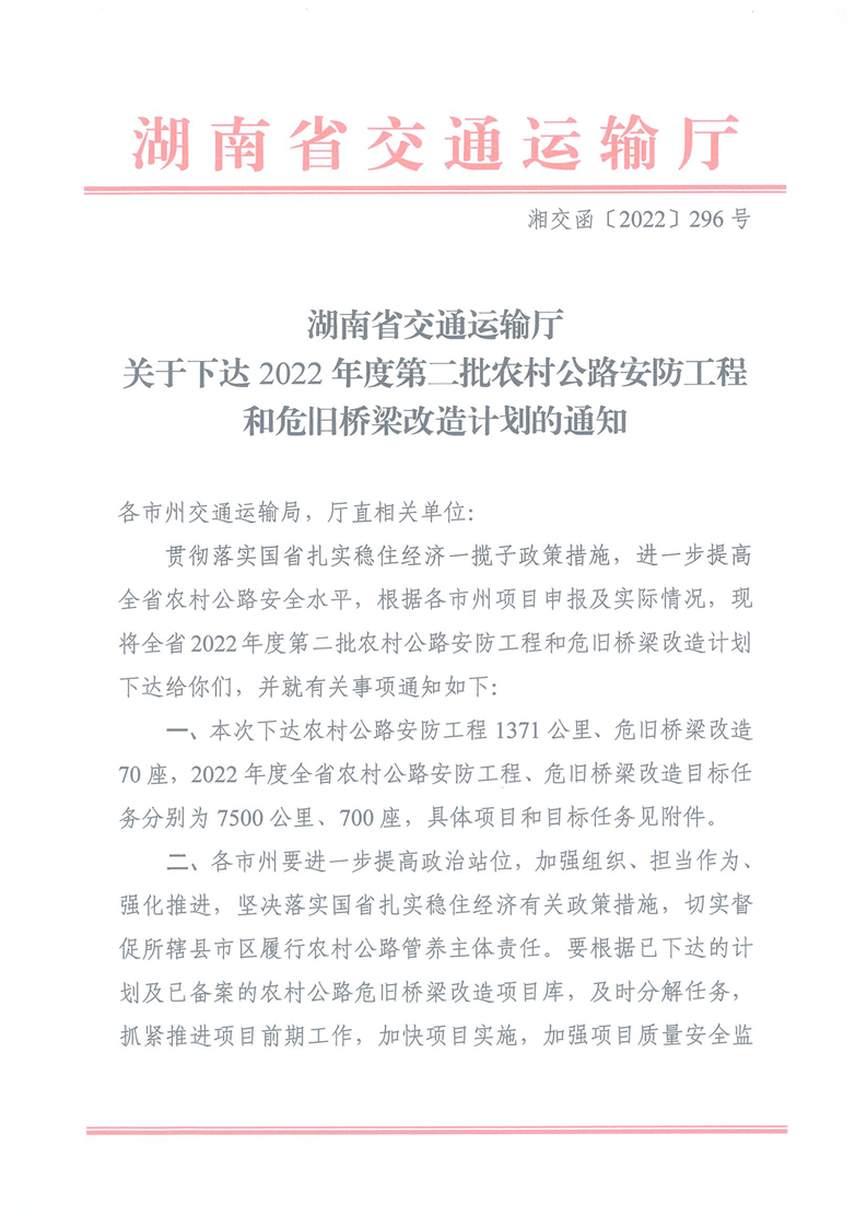 关于下达2022年度第二批农村公路安防工程和危旧桥梁改造计划的通知