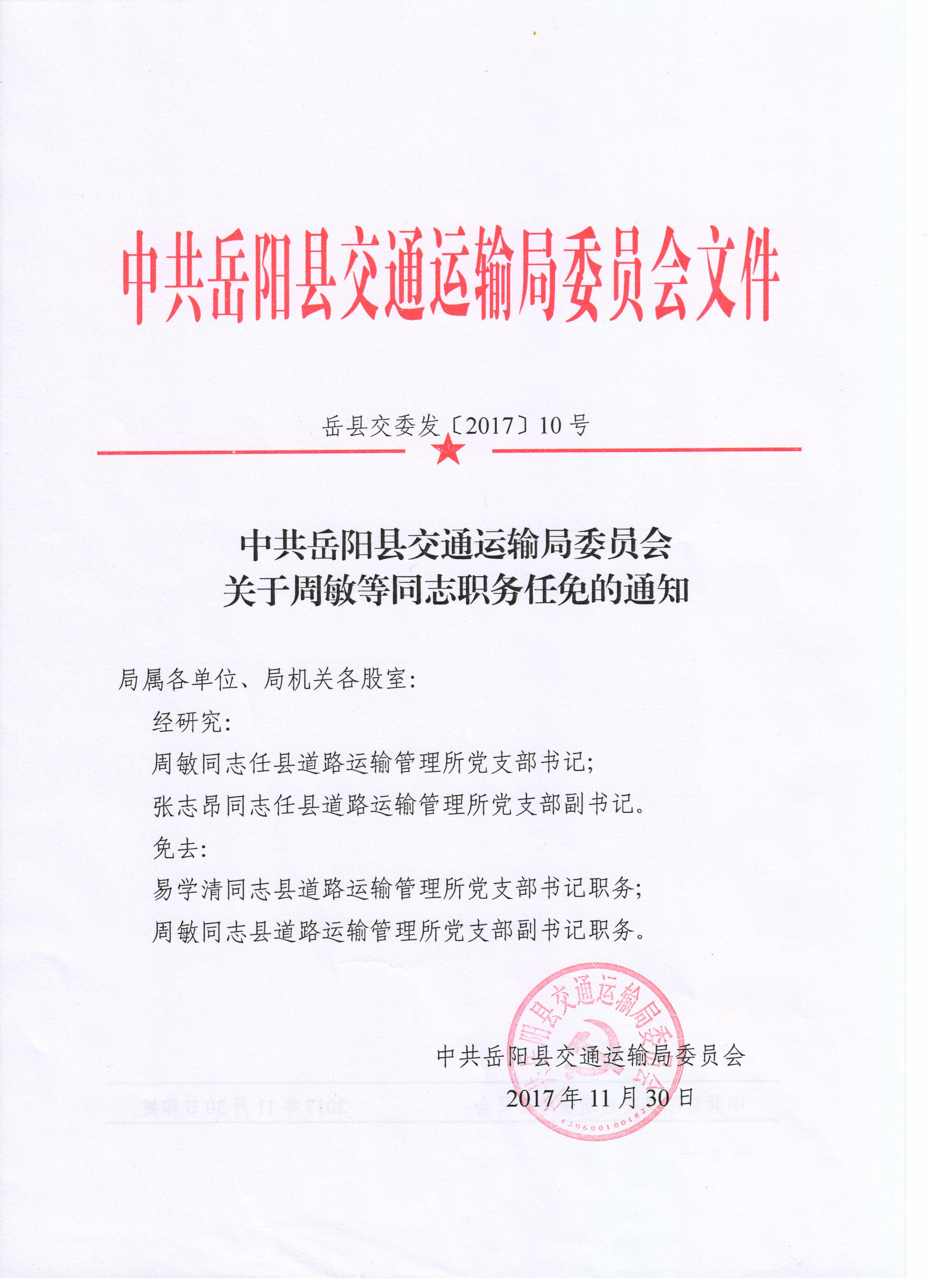 关于周敏等同志职务任免的通知
