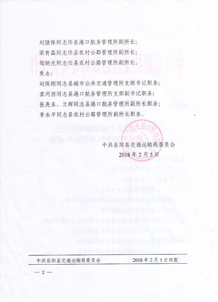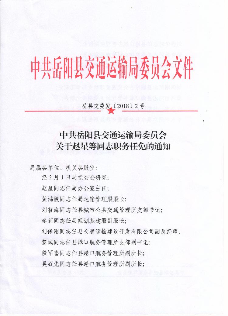 中共岳阳县交通运输局委员会关于赵星等同志职务任免的通知