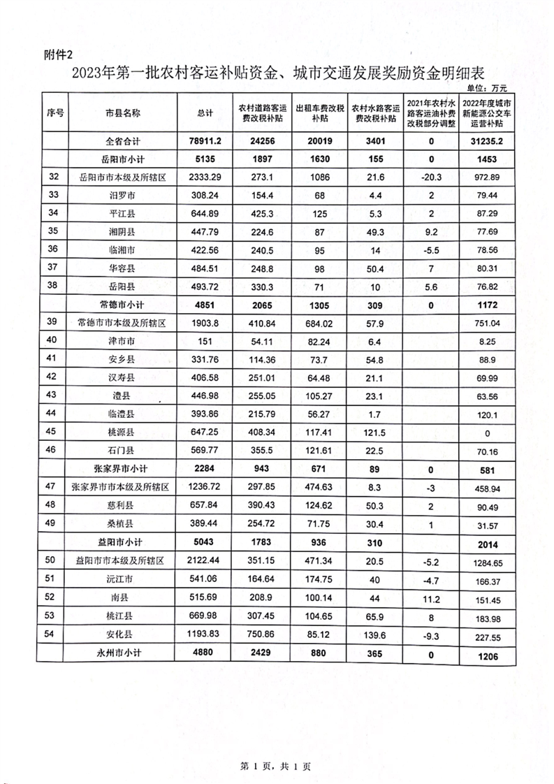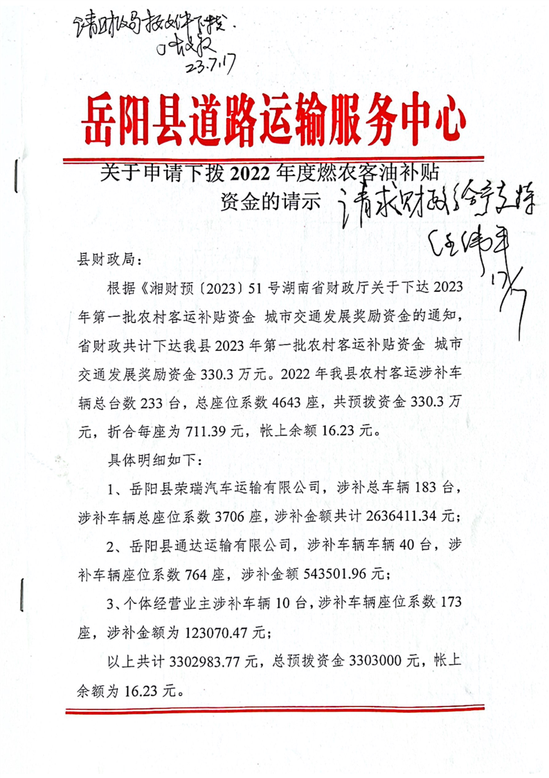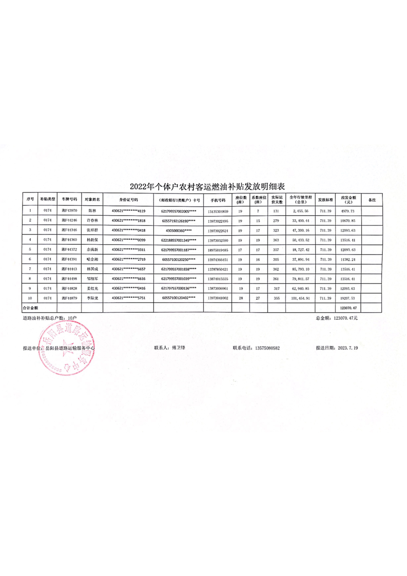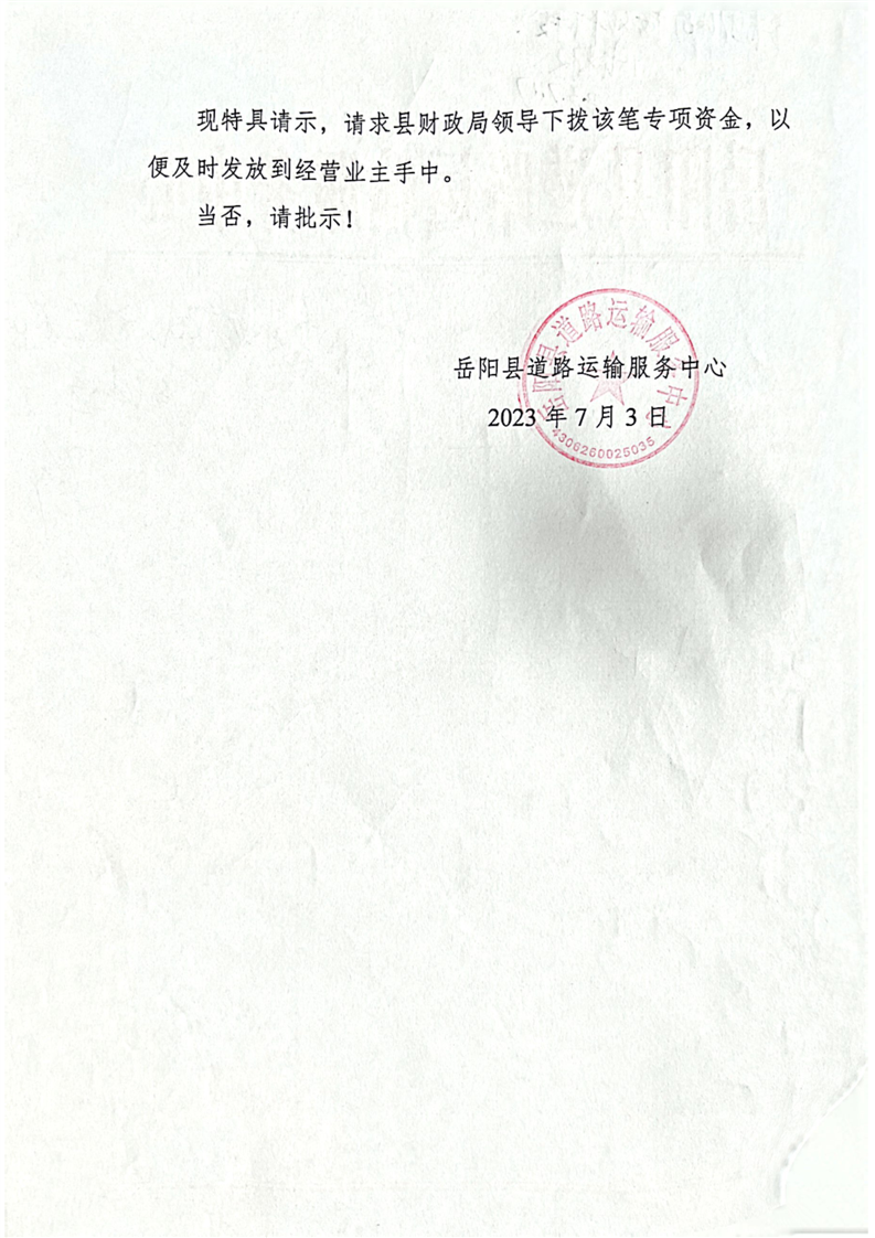 2023年岳阳县农村道路客运补贴(个体经营部分)