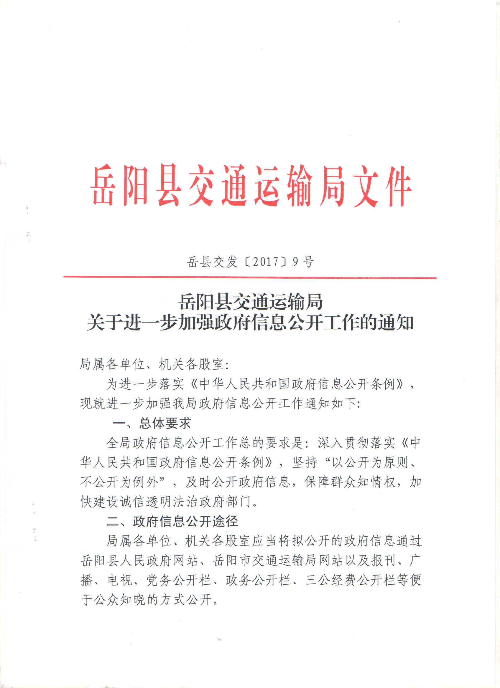 岳阳县交通运输局关于进一步加强信息公开工作的通知
