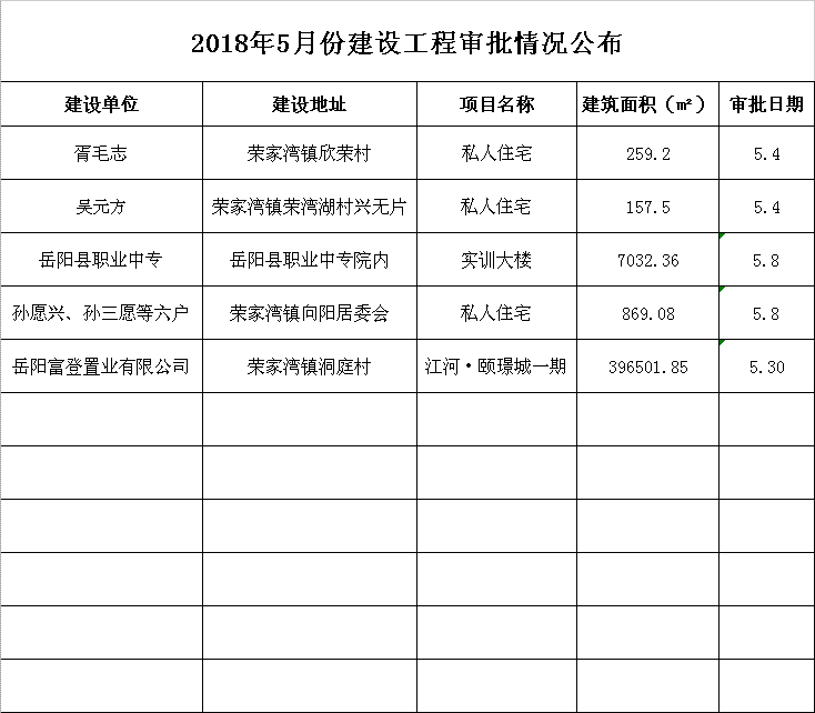2018年5月份建设工程审批情况公布