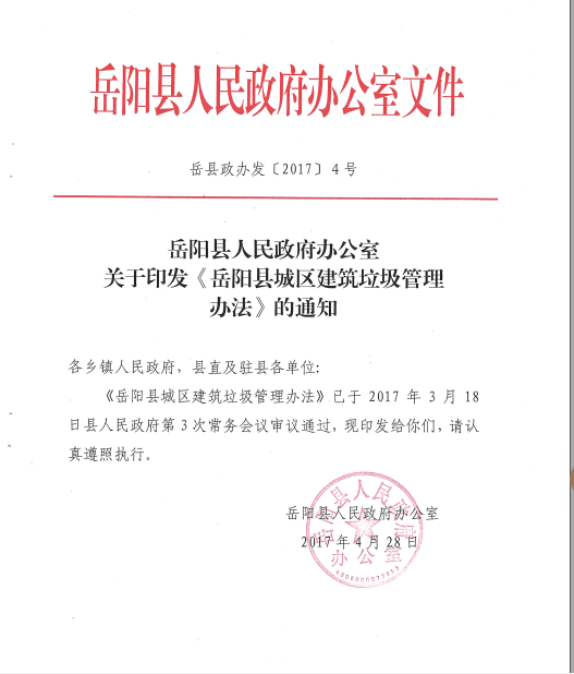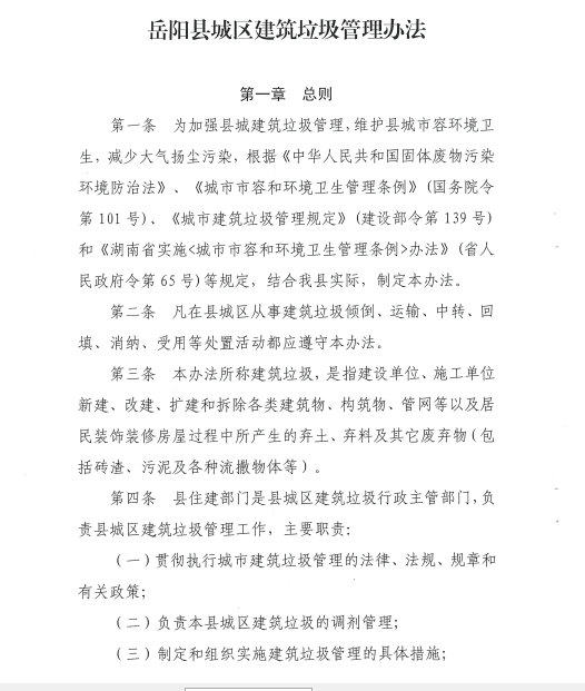 岳阳县城区建筑垃圾管理办法