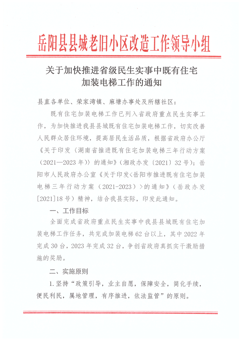 关于加快推进省级民生实事中既有住宅加装电梯工作的通知
