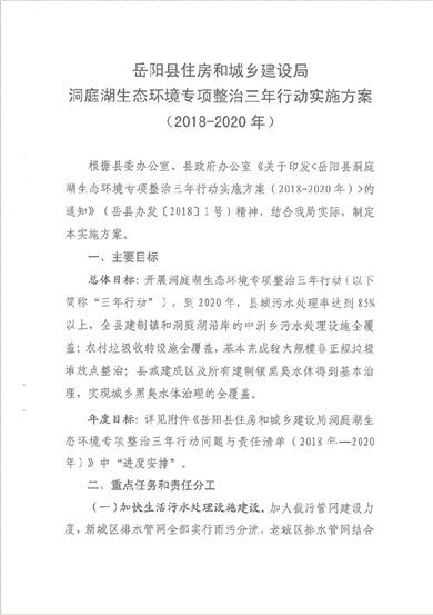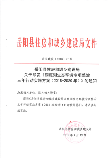 县住建局关于印发《洞庭湖生态环境专项整治三年行动实施方案(2018-2020年)》的通知