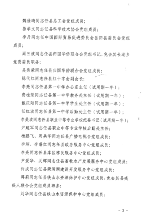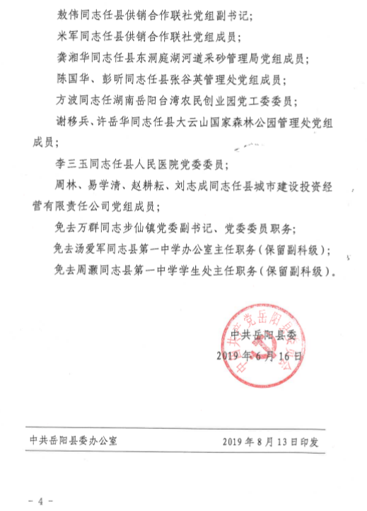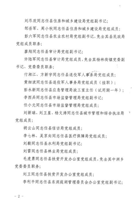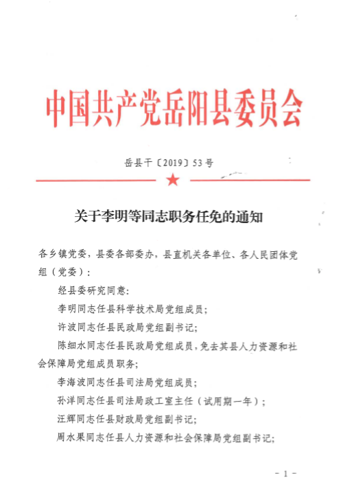 关于岳阳县委县政府对住建局班子成员任免的通知