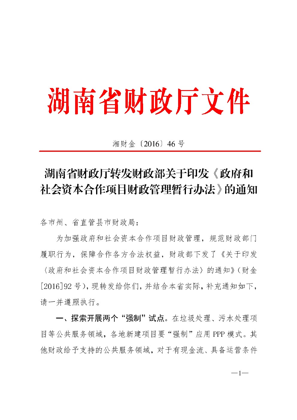 关于印发《政府社会资本合作项目财政管理暂行办法》的通知