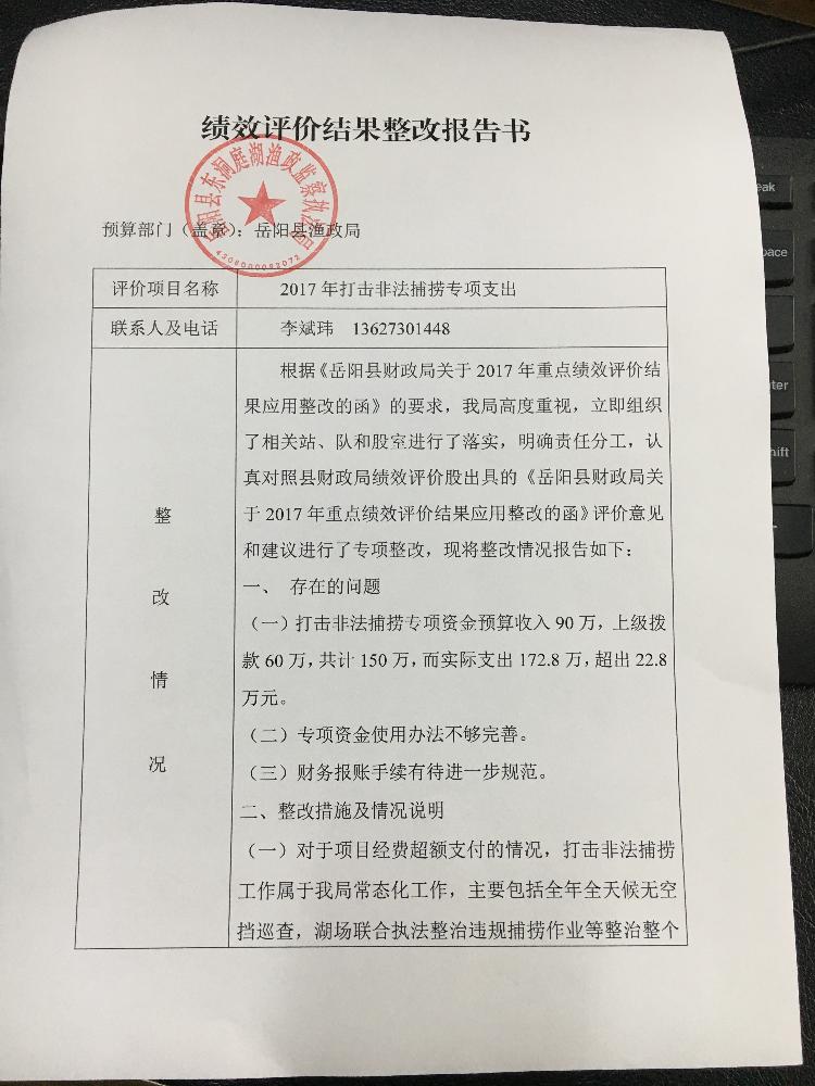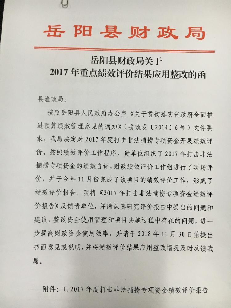 关于2017年重点绩效评价结果应用整改的函(打击非法捕捞)
