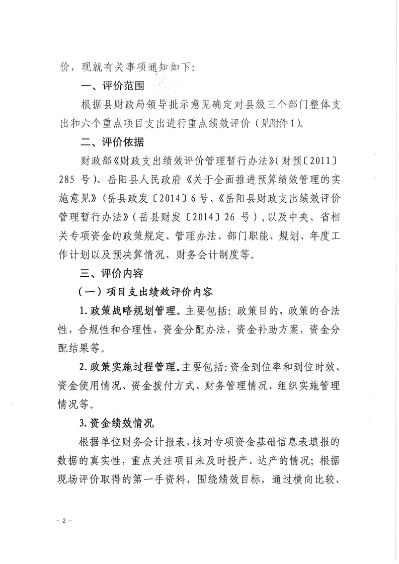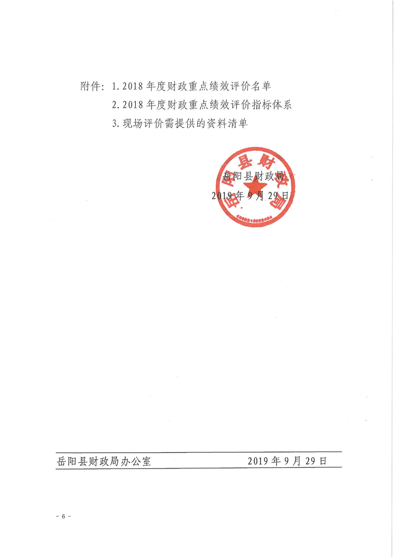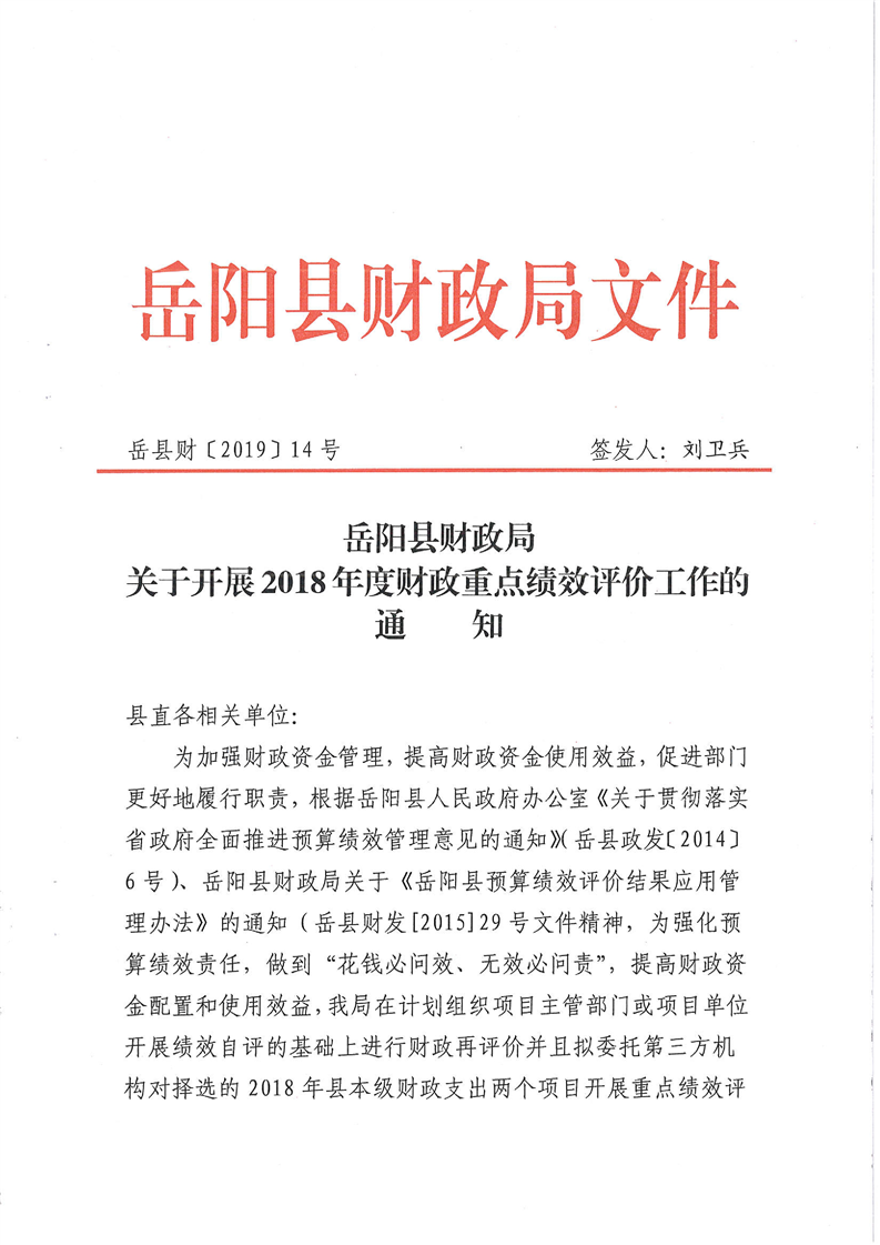 岳阳县财政局关于开展2018年度财政重点绩效评价工作的通知