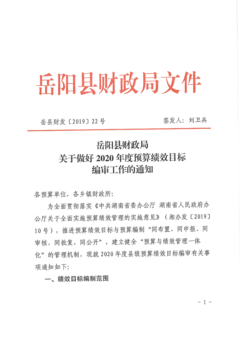 关于编制2020年县直部门预算绩效目标编审工作的通知