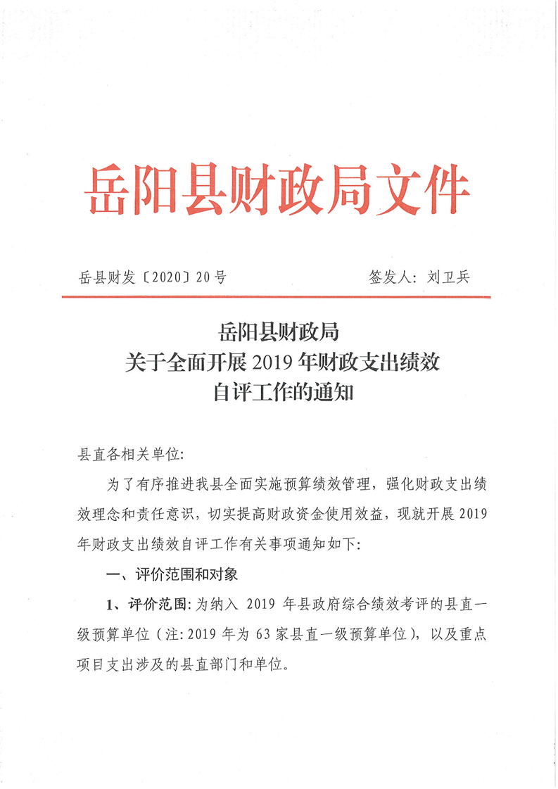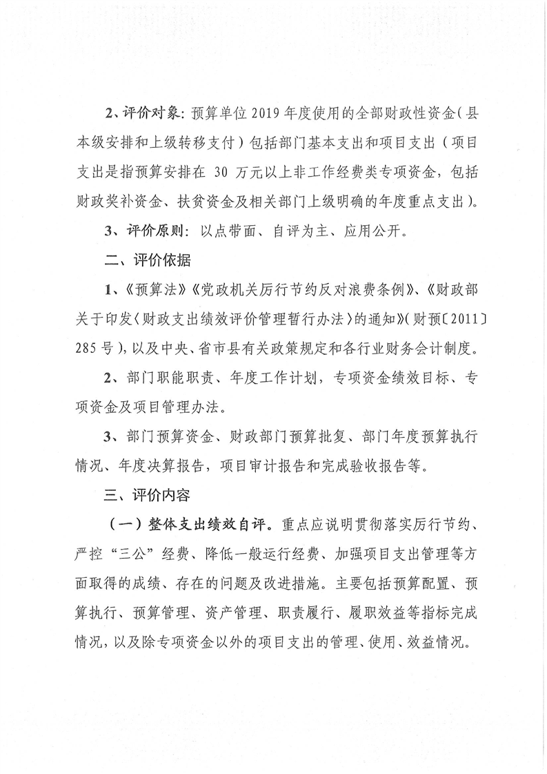关于全面开展2019年财政支出绩效自评工作的通知